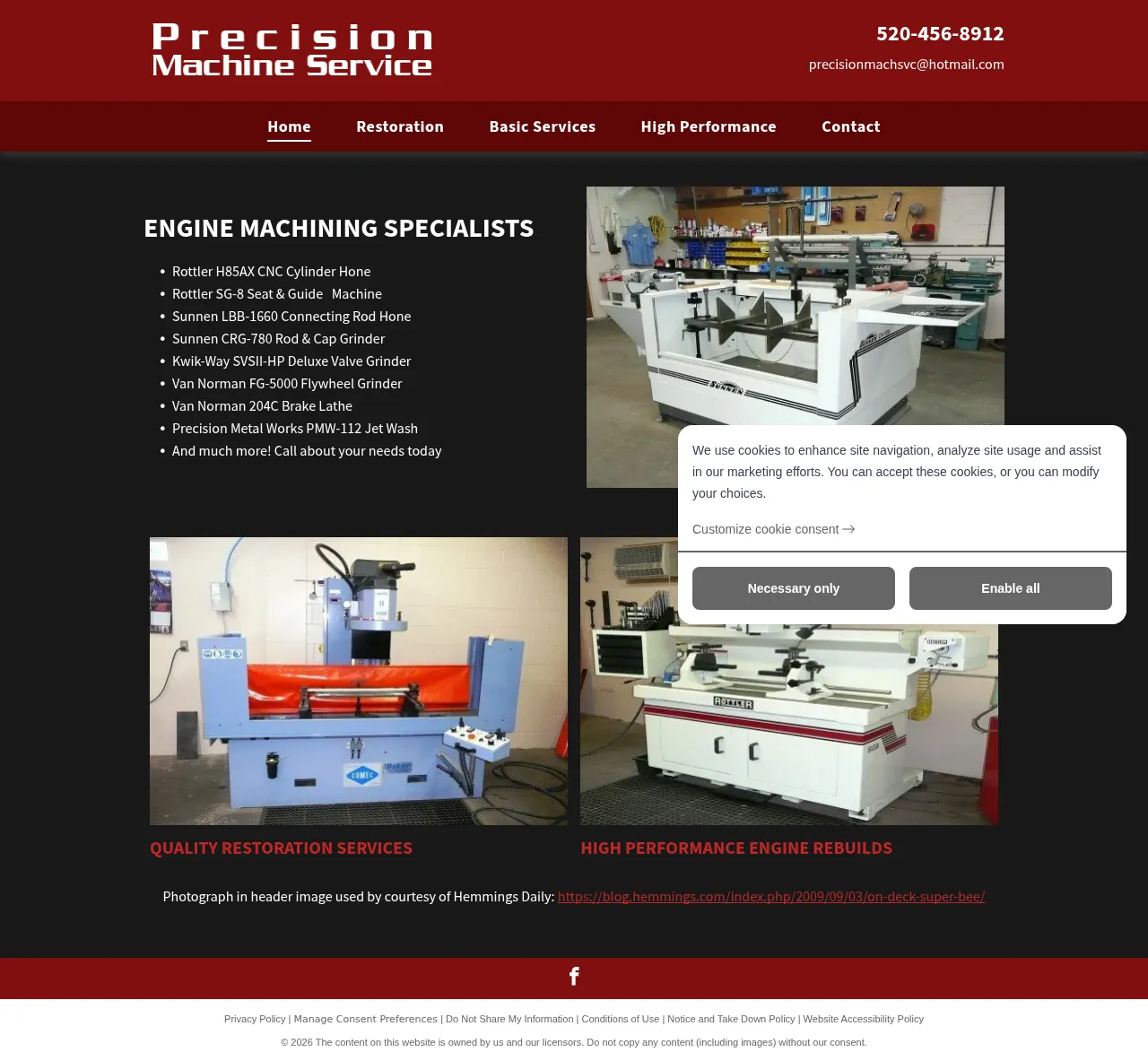 Precision Machine Service is a locally owned engine machining shop with over 20 years of experience. The company specializes in main-bore align-honing and CNC cylinder honing and performs machining and restoration work on both import and domestic engines. Typical work includes cylinder boring and honing, crankshaft grinding and polishing, valve jobs, connecting rod resizing, and precision measurement and inspection services.