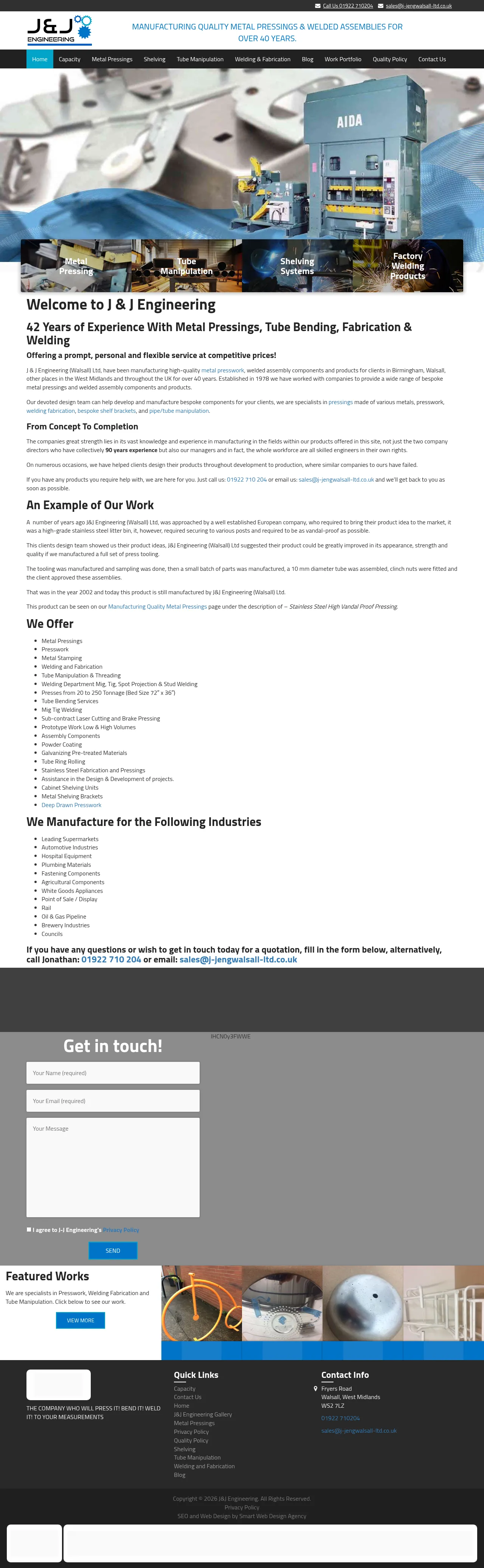 J-J Engineering (Walsall) Ltd is a UK-based manufacturing company specializing in metal presswork, welding, and tube manipulation. With over 90 years of collective experience, the firm provides end-to-end support ranging from design and prototype development to full-scale production. They serve a diverse client base across industries including automotive, rail, healthcare, construction, and retail. The company is equipped to handle complex fabrication requirements, including high-volume stamping, deep-drawn presswork, and bespoke assembly projects. Their facility offers a comprehensive range of finishing services to ensure quality and durability in all manufactured components.