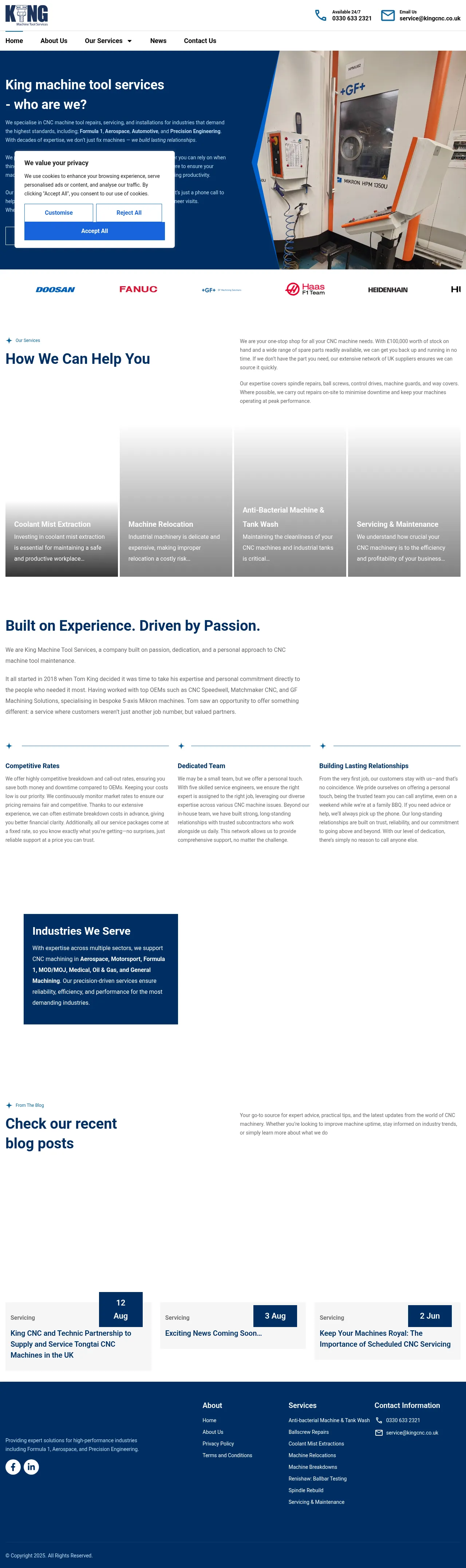 King Machine Tool Services provides comprehensive maintenance, repair, and support for CNC machinery. The company specializes in breakdown response, spindle rebuilds, precision calibration, and industrial machine relocation. Serving demanding sectors such as aerospace, automotive, Formula 1, and precision engineering, the team offers both on-site and remote technical support. They prioritize minimizing downtime through efficient spare part management and experienced engineering expertise. Operating with a commitment to long-term partnerships, the company provides 24/7 assistance to maintain optimal machine performance.