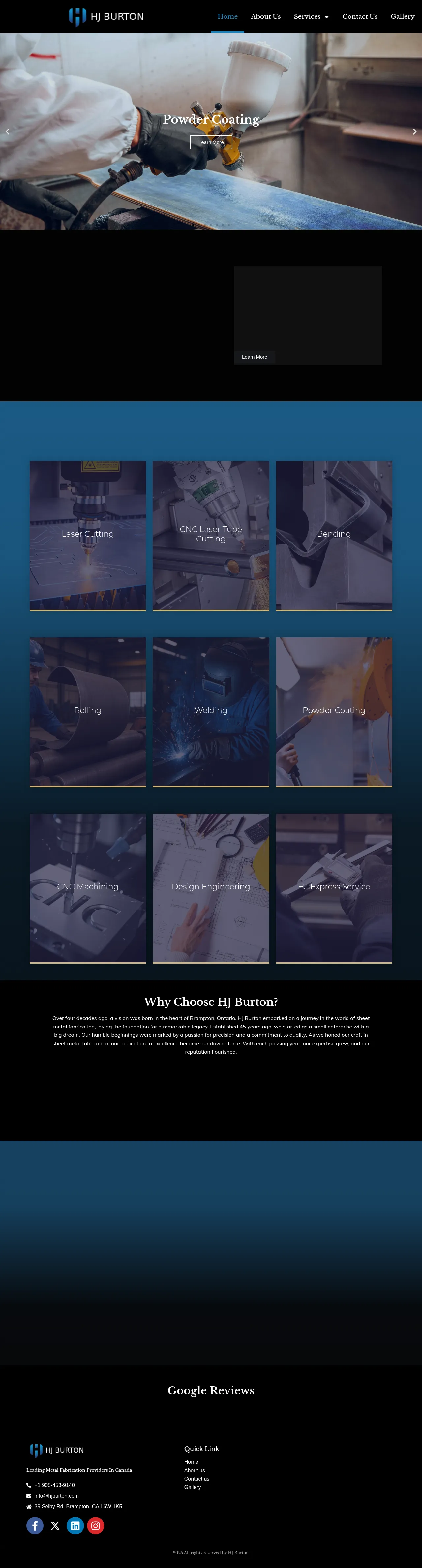 HJ Burton is a premier metal fabrication provider based in Brampton, Ontario, with over 45 years of industry experience. The company specializes in precision sheet metal processing, offering a comprehensive suite of services including laser cutting, CNC machining, and design engineering. Committed to high-quality standards, they serve a diverse range of industrial clients throughout the Toronto area. Their facility is equipped to handle complex projects from initial design through final production. By leveraging decades of expertise, HJ Burton ensures reliable, high-precision results for all manufacturing requirements.