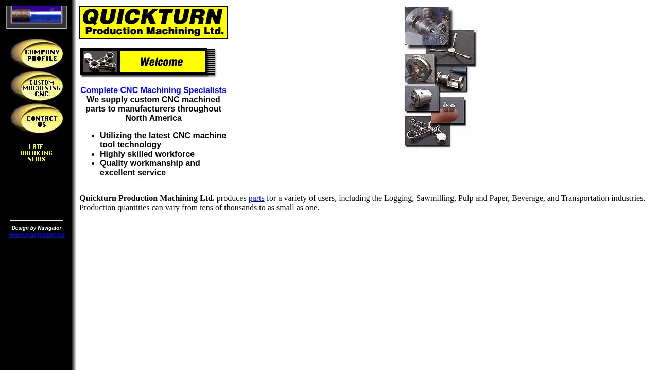 Quick Turn Machine provides custom CNC machining services for manufacturers across North America. The company serves a diverse range of sectors, including logging, sawmilling, pulp and paper, beverage production, and transportation. They maintain a highly skilled workforce capable of handling production runs ranging from single prototype units to quantities in the tens of thousands. The organization utilizes advanced CNC tool technology to ensure precision and quality workmanship. Their focus remains on providing reliable machining solutions backed by dedicated customer service.