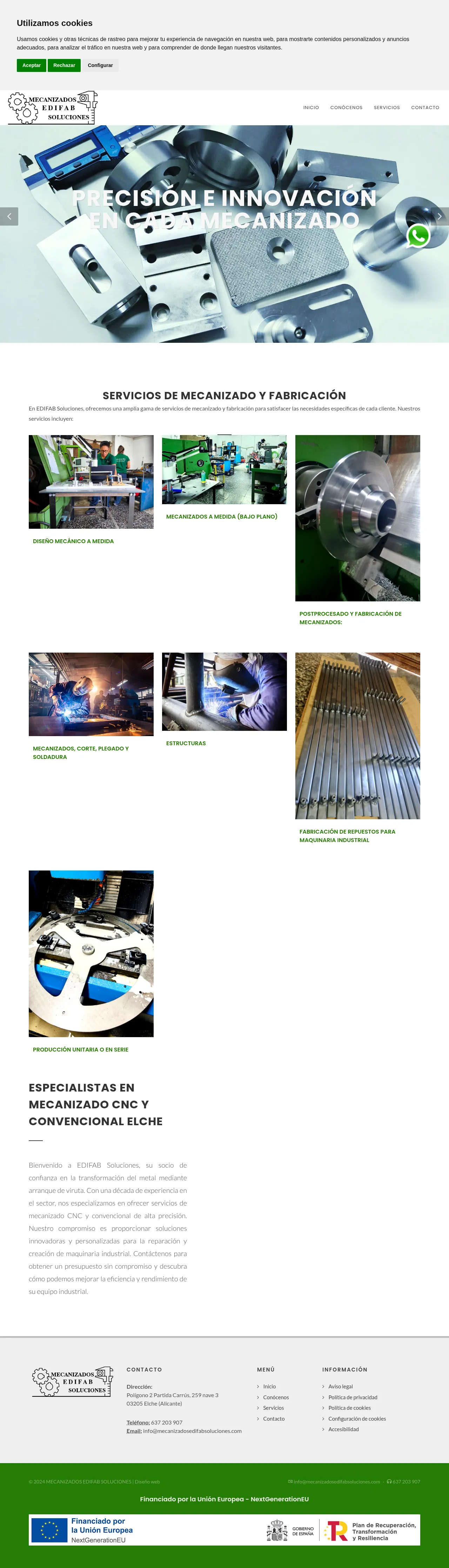 Partida Carrus, 03205 Elx, Alicante, Spain, Elche, Comunitat Valenciana, Kingdom of Spain637 20 39 07info@mecanizadosedifabsoluciones.comhttp://www.mecanizadosedifabsoluciones.com/