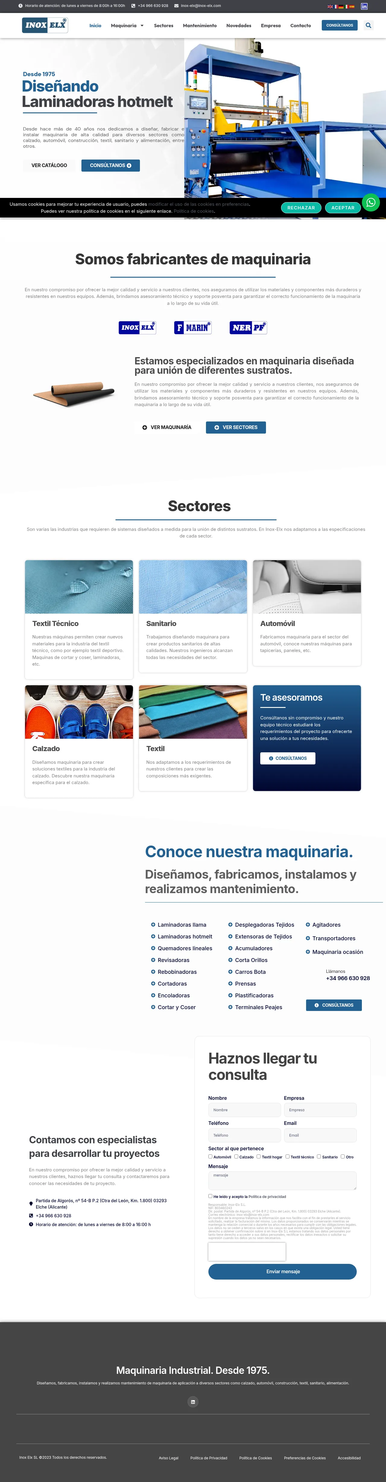 Inox-Elx S.L. specializes in the design, manufacture, and installation of industrial machinery for applications including laminating, coating, and precision cutting. With over 40 years of experience, the company serves diverse sectors such as automotive, footwear, textiles, construction, and food processing. Their technical capabilities include process engineering, custom machinery development, and comprehensive maintenance and repair services. The firm is recognized for its ability to integrate advanced technology into turnkey projects tailored to specific substrate bonding requirements. They provide end-to-end support, from initial design and installation to ongoing technical assistance for machine longevity.
