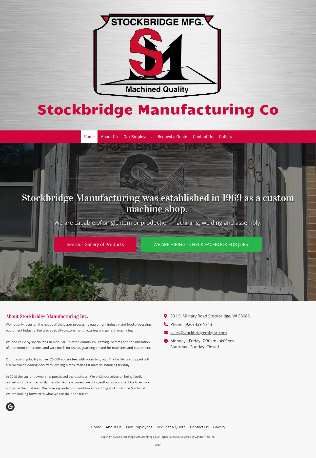 Established in 1969, Stockbridge Manufacturing Inc. is an industrial metal fabrication and machining provider based in Wisconsin. The company specializes in delivering precision components and manufacturing services tailored to meet diverse industrial requirements. With decades of experience, they maintain a focus on production quality and consistent client communication. Their operations serve as a resource for companies seeking reliable machining and manufacturing solutions. The organization operates from its facility in Stockbridge, maintaining standard business hours to assist with client project inquiries.