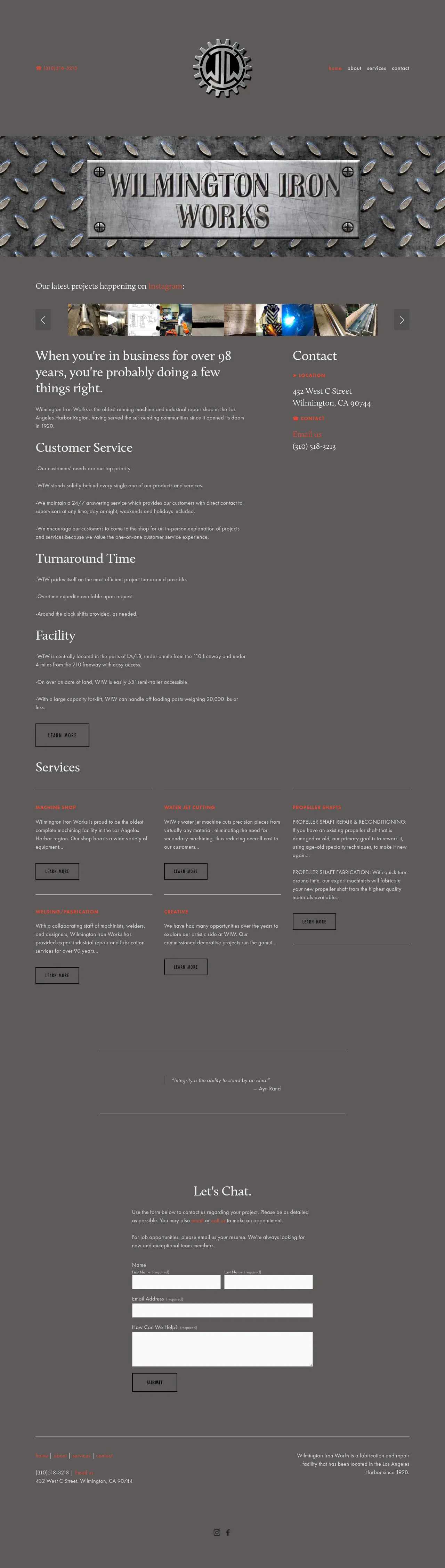 Wilmington Iron Works is a full-service fabrication and repair facility operating in the Los Angeles Harbor region since 1920. The company specializes in precision machining, custom welding, and propeller shaft fabrication for various industrial and marine applications. Their facility encompasses over 23,000 square feet and is equipped to handle large-scale components, including shafts up to 30 feet in length. Beyond industrial repair, they offer waterjet cutting services and artistic decorative project fabrication. As a multi-generational business, they prioritize high-quality standards, offering expert design support and computer-assisted manufacturing capabilities to meet diverse customer specifications.