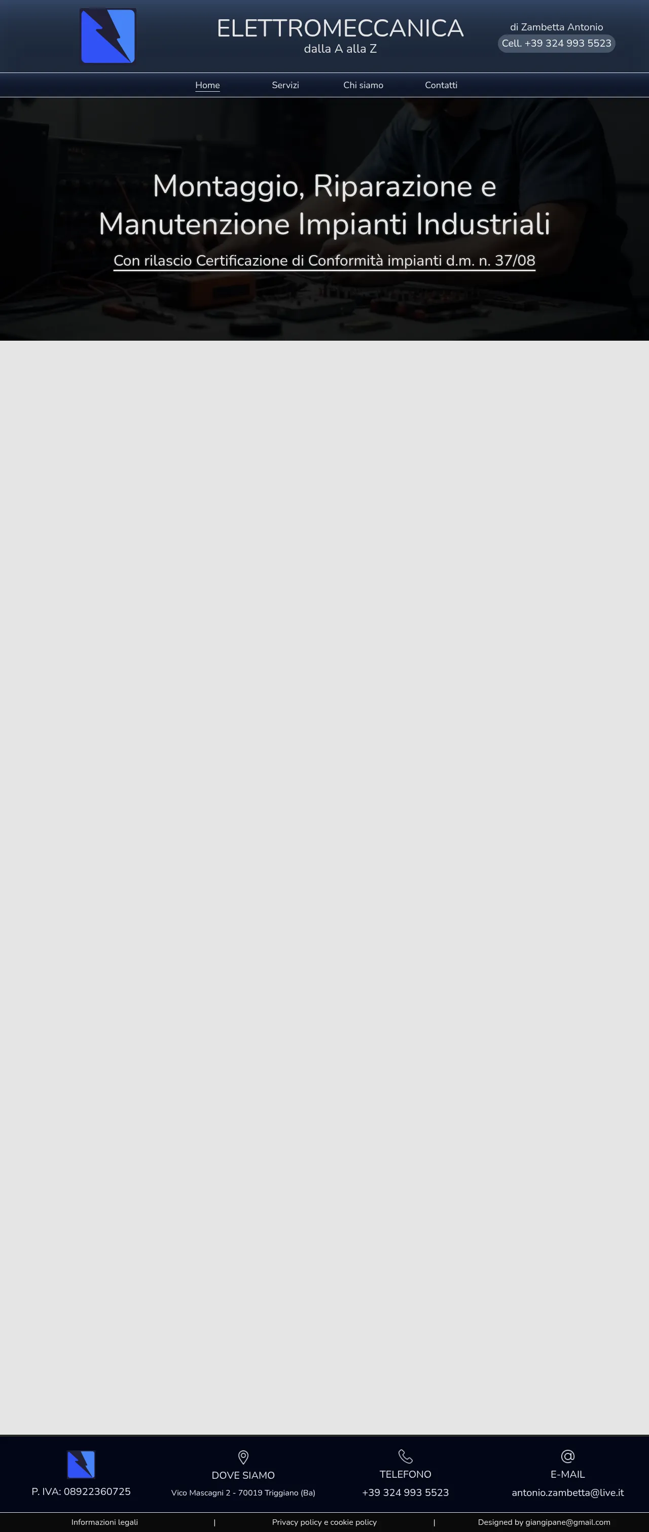 Vico Mascagni, 70019 Triggiano BA, Italy, Triggiano, Puglia, Italian Republic324 993 5523antonio.zambetta@live.ithttps://www.elettro-meccanica.it/