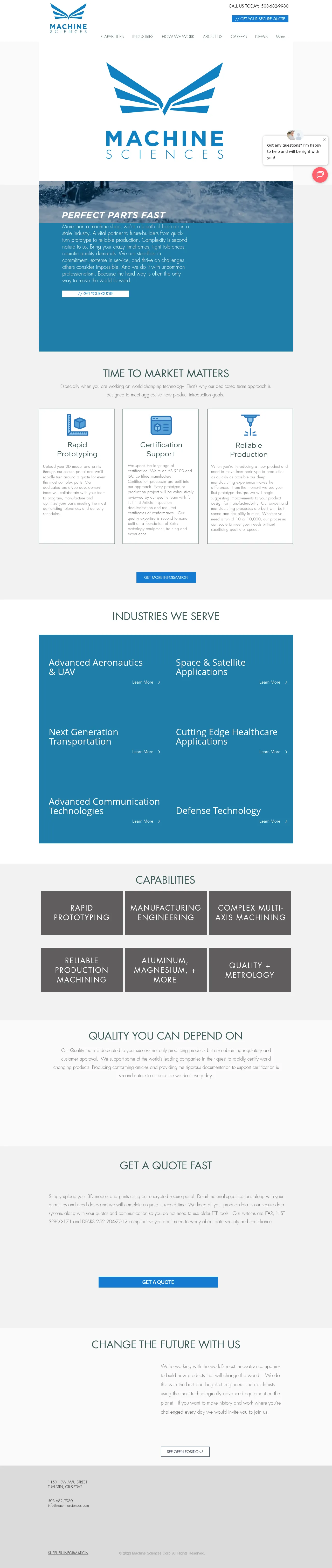 Machine Sciences is a manufacturing facility specializing in rapid prototyping and production machining for complex components. The company serves a diverse range of industries, including aerospace, defense, healthcare, and satellite communications. Utilizing advanced 5-axis machining technology, the firm manages projects from initial virtual CAD designs through to final physical production. They emphasize tight tolerance manufacturing, design optimization, and secure data handling for sensitive defense-related programs. Their services are supported by a large-scale facility designed to meet rigorous quality and delivery schedules.
