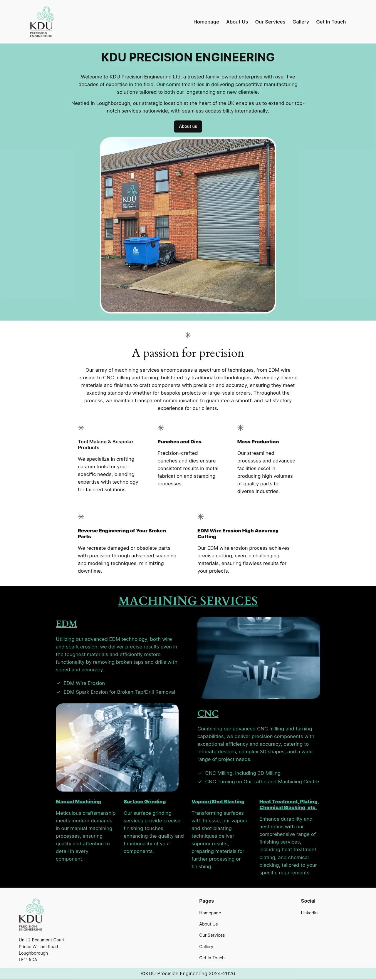 KDU Precision Engineering Ltd is a family-owned manufacturing firm based in Loughborough, UK, with over five decades of industry experience. The company provides a comprehensive suite of machining services, including CNC milling and turning, EDM wire and spark erosion, and manual machining for both bespoke projects and high-volume orders. They support clients throughout the entire project lifecycle, offering design consultation, prototyping, and material selection assistance. Their capabilities extend to specialized tasks such as reverse engineering, surface finishing, and component repair. The firm serves a diverse client base across the UK and internationally, maintaining strict quality control standards to ensure dimensional accuracy and precision.