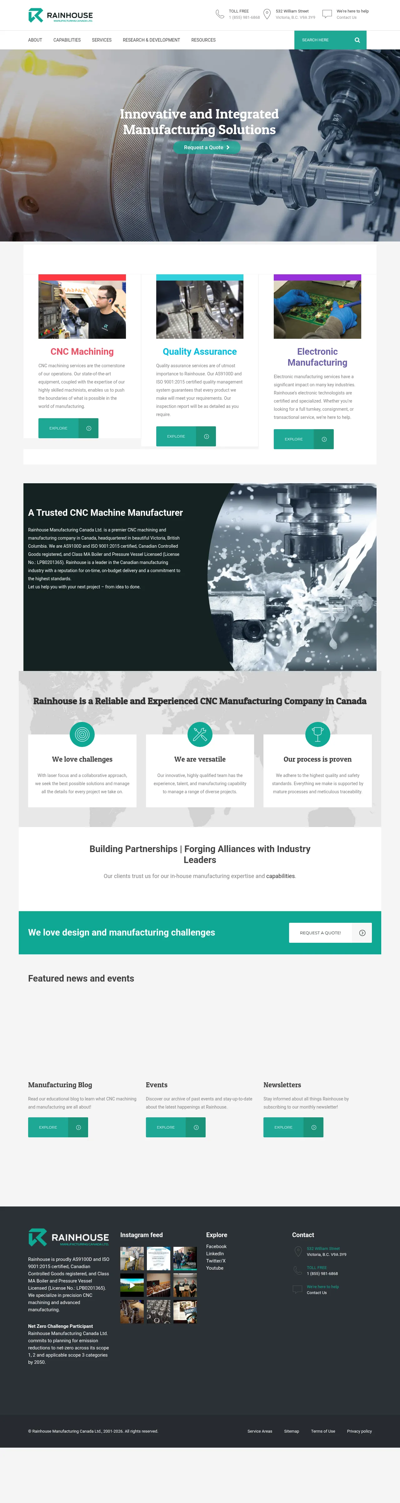 Rainhouse Manufacturing Canada Ltd. is a full‑service CNC machining and electronic manufacturing company based in Victoria, British Columbia. The company provides CNC milling and turning, electronic manufacturing services (EMS), contract and OEM manufacturing, design support, procurement, and testing/inspection. Rainhouse serves production and job‑shop requirements and offers turnkey, consignment, or transactional service models. It holds industry certifications and specializes in delivering projects on time and on budget.