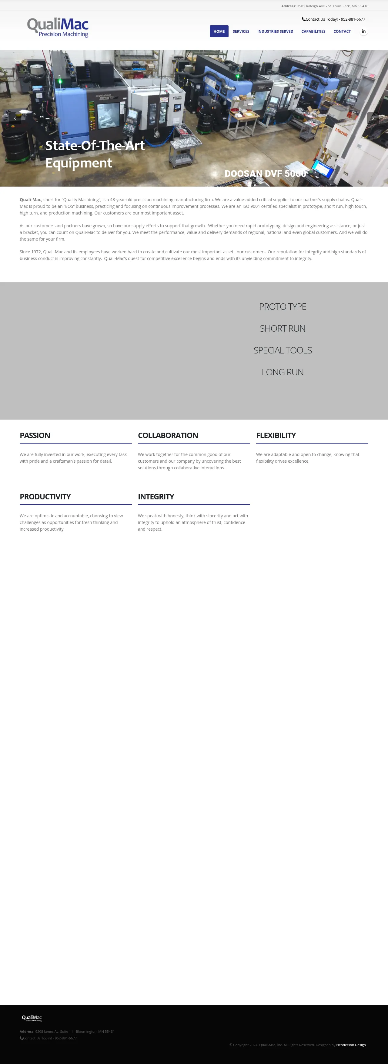 Established in 1972, Quali-Mac Inc. is a precision machining and tooling facility based in Bloomington, Minnesota. The company specializes in CNC and manual milling and turning, offering services for prototype development, short-run production, and high-volume manufacturing. Utilizing advanced 5-axis machining and in-house CAD/CAM capabilities, they produce high-tolerance components from a variety of metals and plastics. To provide comprehensive manufacturing solutions, Quali-Mac also manages secondary operations such as heat treating, plating, and specialized welding through integrated outsourcing management.
