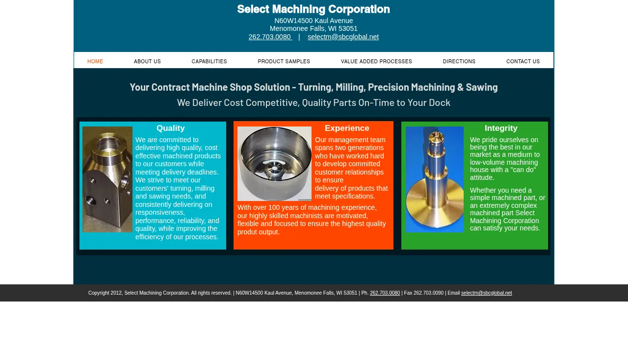 N60W14500 Kaul Ave, Menomonee Falls, WI 53051, USA, Menomonee Falls, Wisconsin, United States(262) 703-0080selectm@sbcglobal.nethttp://www.selectmachining.com/
