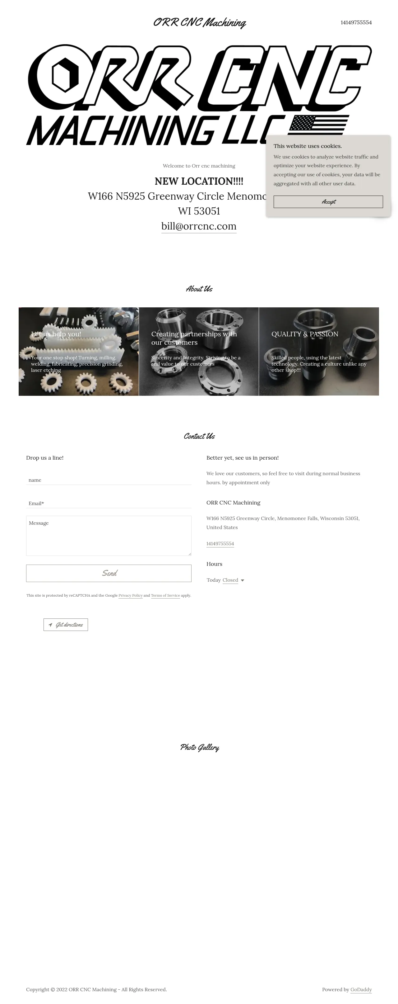 W166N5925 Greenway Cir, Menomonee Falls, WI 53051, USA, Menomonee Falls, Wisconsin, United States(414) 975-5554bill@orrcnc.comhttps://orrcncmachining.com/