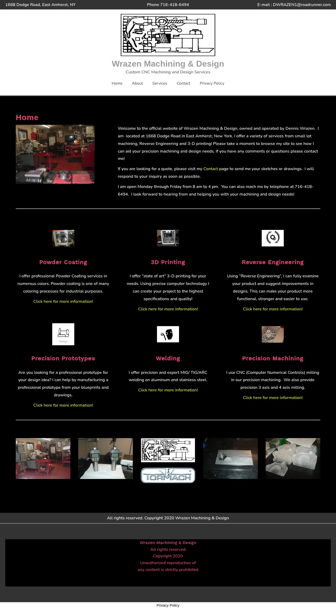 Wrazen Machining and Design provides specialized manufacturing solutions including precision CNC machining, additive manufacturing, and reverse engineering services. The company supports product development through professional prototyping, custom fixture fabrication, and expert welding on various metals. Capabilities include 3-axis and 4-axis milling, powder coating, and detailed CAD-based design services. They serve clients by transforming blueprints and conceptual designs into high-quality, functional components. The facility focuses on producing precision parts for industrial applications with strict adherence to design specifications.