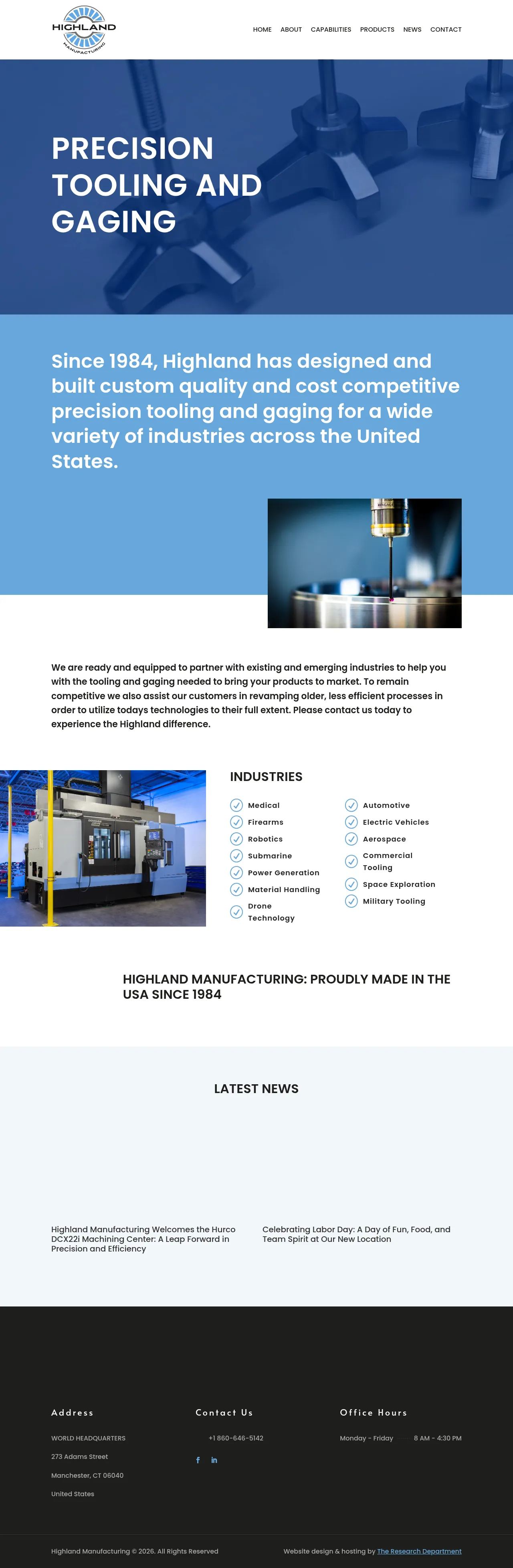 Established in 1984, Highland Manufacturing specializes in the design and production of custom precision tooling and gaging solutions. The company serves a diverse range of sectors including aerospace, medical, automotive, defense, and robotics. They provide end-to-end manufacturing support for new product launches while assisting established clients in modernizing legacy processes. By integrating advanced machining technologies, Highland helps customers improve operational efficiency and maintain competitive advantage. The firm emphasizes quality craftsmanship and is headquartered in Manchester, Connecticut.