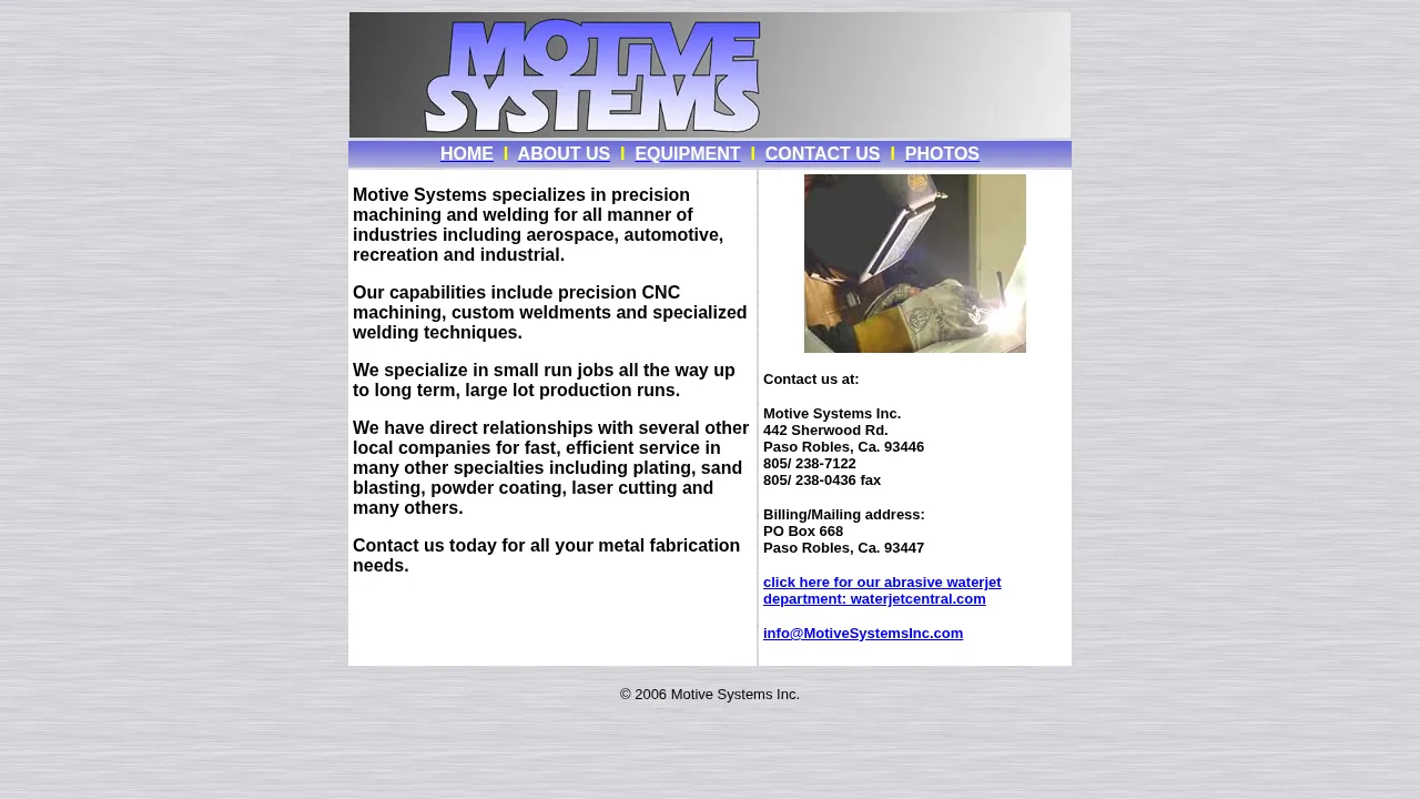 Motive Systems Inc is a full-service manufacturing facility specializing in precision machining, metal fabrication, and assembly. The company offers diverse capabilities including CNC milling and turning, abrasive waterjet cutting, and specialized welding services. They support a variety of industrial projects by providing secondary processes such as powder coating, plating, and anodizing. Operating from their Paso Robles facility, the business serves clients with both small-batch and larger production requirements. Their integrated approach ensures comprehensive support from initial fabrication to final finishing.