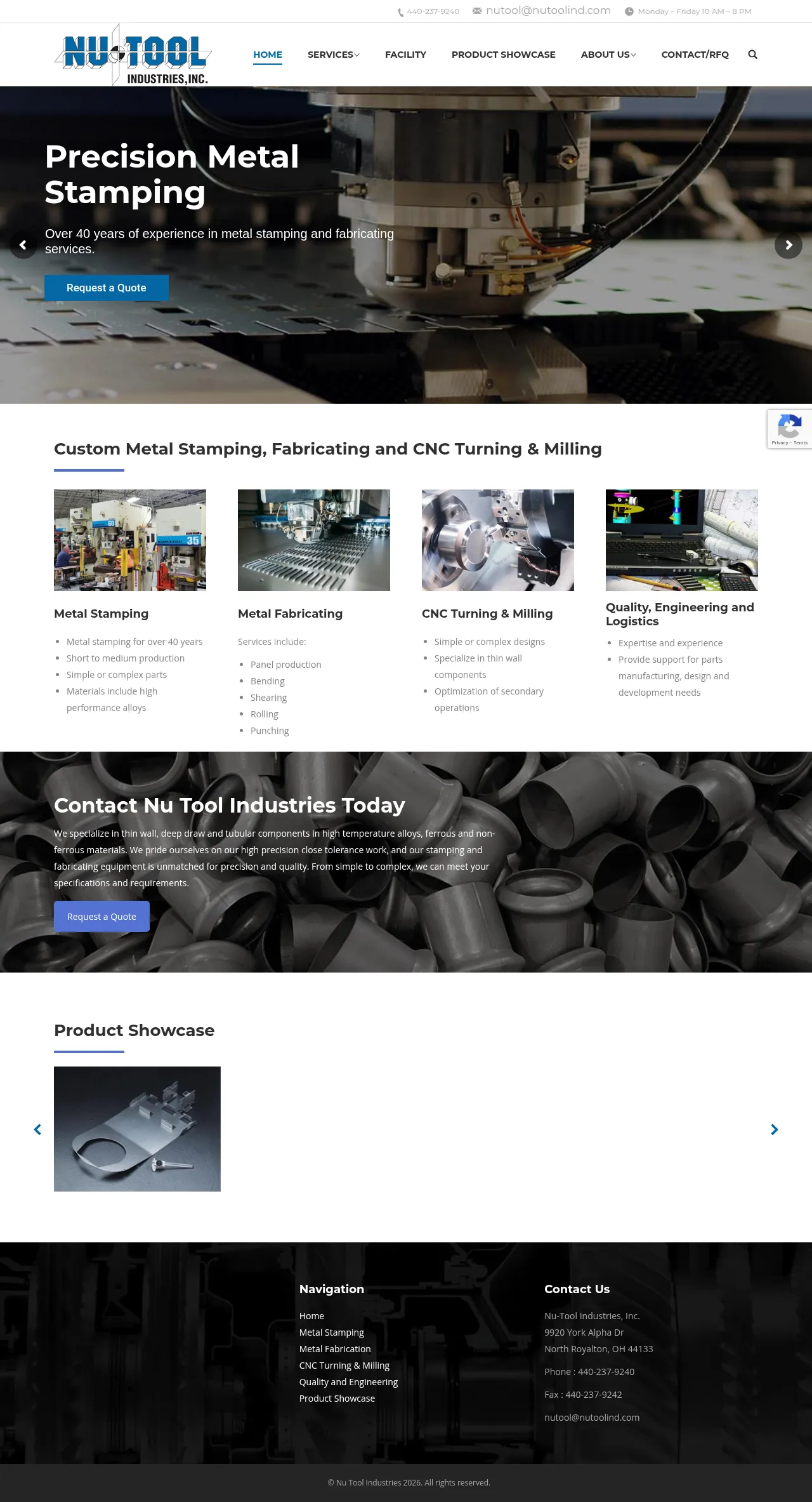 Nu-Tool Industries is a precision manufacturing facility with over 40 years of experience specializing in metal stamping, fabrication, and CNC machining. The company provides design, development, and production support for components ranging from simple to complex, with particular expertise in thin-wall, deep-draw, and tubular parts. They serve a wide array of sectors including aerospace, defense, energy, medical, and consumer goods. Combining modern metal forming technology with precision secondary machining, the company is equipped to manage short to medium production runs. Their facility offers a comprehensive tool room and support equipment capable of handling high-temperature alloys and various ferrous and non-ferrous materials.