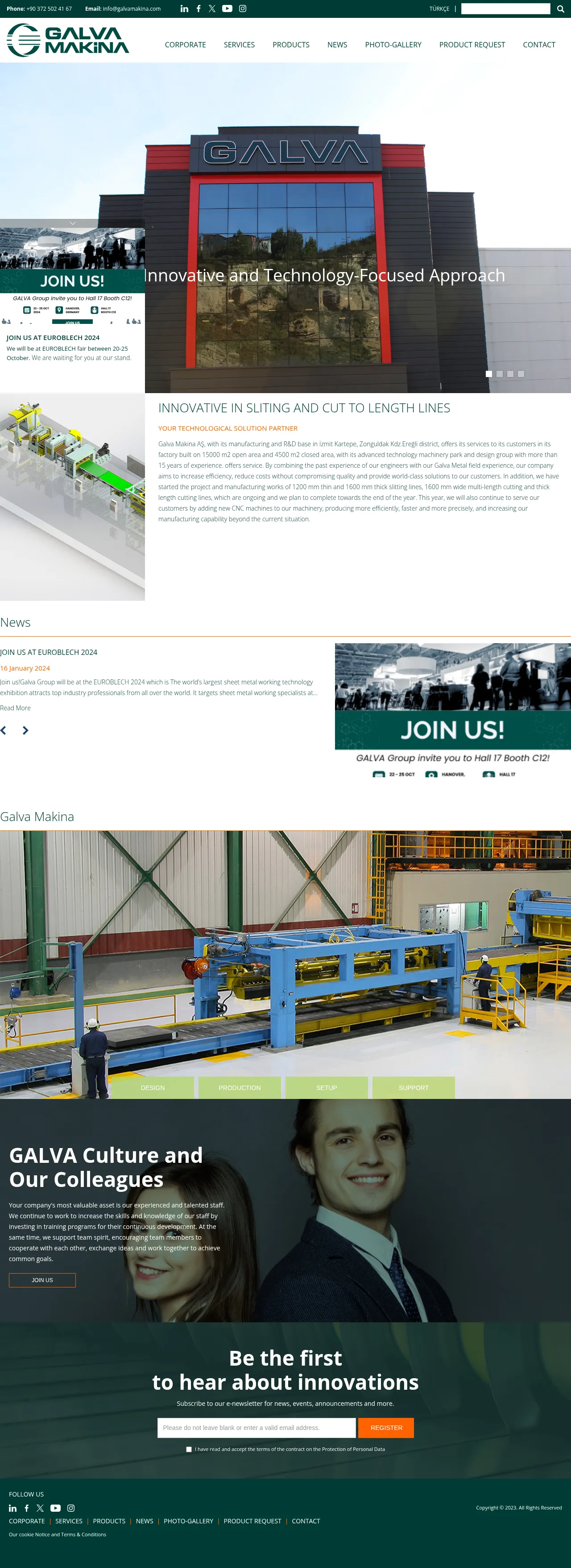 Galva Makina is a technology-focused engineering firm specializing in the design, production, and installation of industrial machinery, with a primary focus on slitting and cut-to-length lines. The company provides custom-engineered solutions for sheet metal processing, including 3D facility layout planning and machine retrofitting. Serving sectors such as automotive and aviation, they leverage advanced 3D CAD and CAM manufacturing processes to ensure high operational efficiency. The firm is recognized for its technical support, offering global installation services and comprehensive maintenance packages.