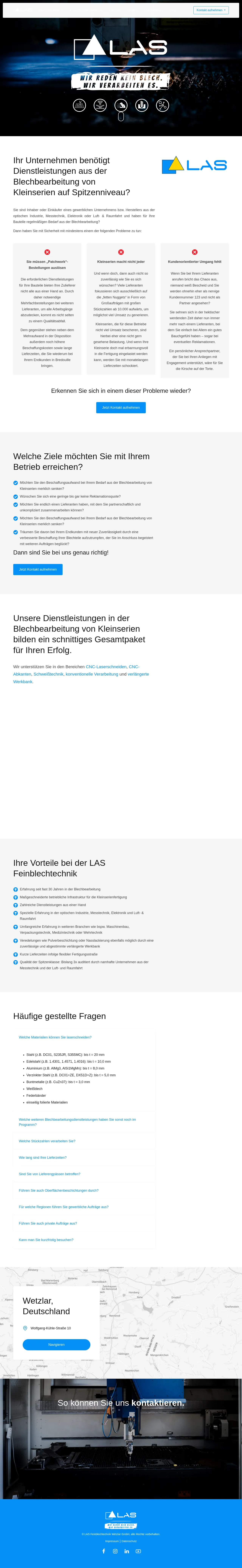 LAS Feinblechtechnik Wetzlar GmbH is a B2B manufacturing partner specializing in high-quality sheet metal processing for small-batch production. With nearly 30 years of industry experience, the company serves sectors including mechanical engineering, medical technology, aerospace, and vacuum technology. Their core capabilities range from CNC laser cutting and bending to complex welding, surface finishing, and machining. By maintaining a flexible and efficient production infrastructure, they deliver reliable, customized solutions for specialized requirements. The company operates throughout the DACH region, focusing on professional collaboration and consistent quality standards.