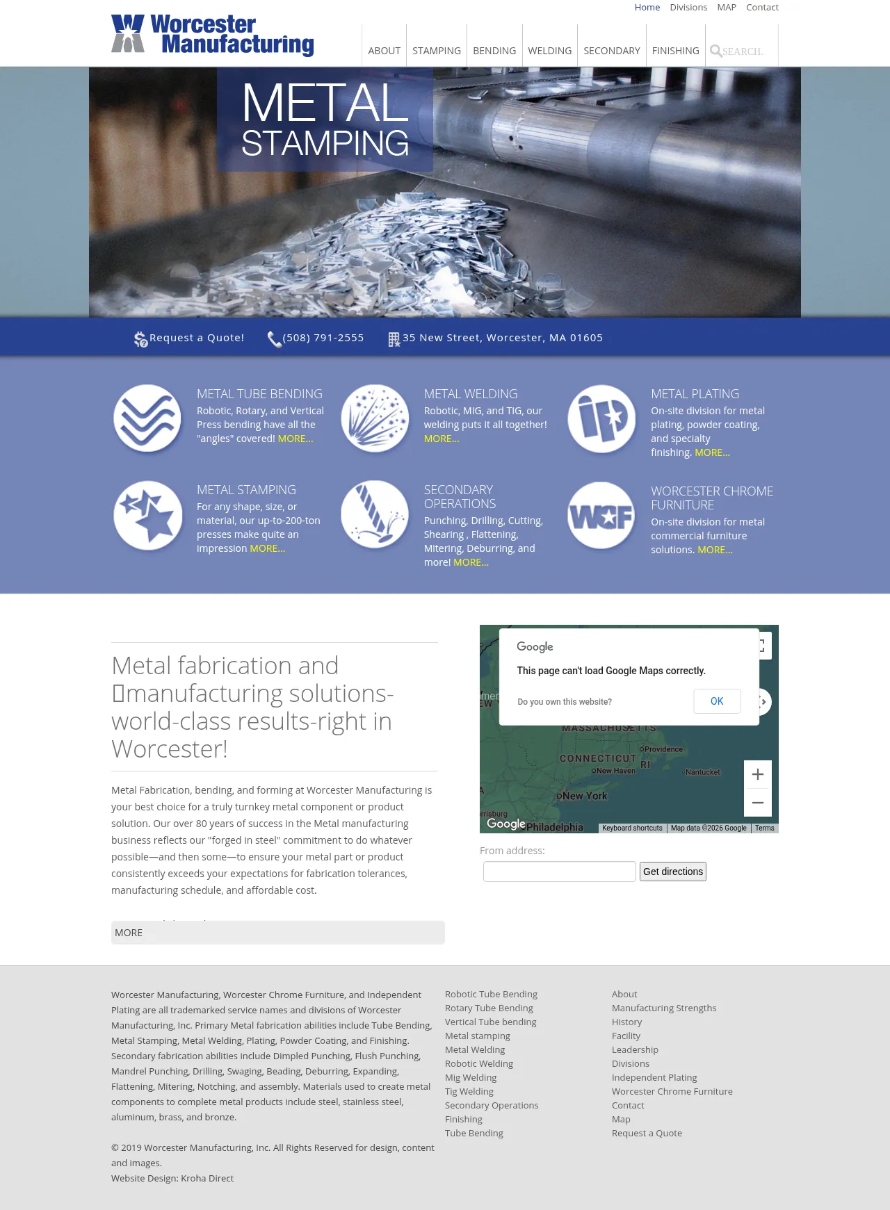 Worcester Manufacturing, Inc. is a comprehensive metal fabrication provider based in Worcester, Massachusetts, with over 80 years of industry experience. The company offers a wide range of services including metal stamping, robotic welding, tube bending, and professional finishing through its divisions, Independent Plating and Worcester Chrome Furniture. Operating out of a 140,000-square-foot facility, they handle projects ranging from component manufacturing to complete product assembly for the commercial, medical, and school furniture industries. Their turnkey solutions integrate concept planning, precision fabrication, surface finishing, and inventory logistics to ensure consistent quality and project schedules. The company is committed to high-efficiency, lean manufacturing processes that allow for competitive production of complex metal components.