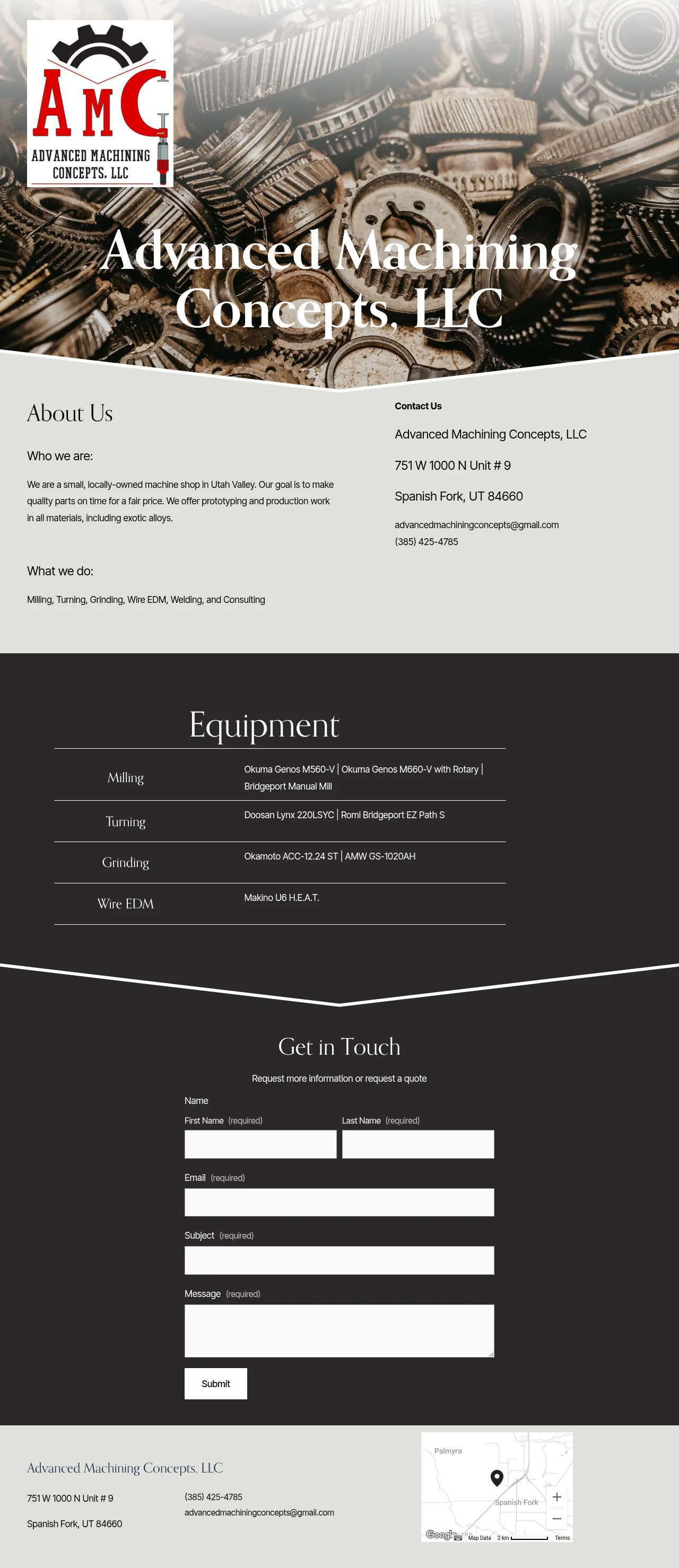 Advanced Machining Concepts, LLC is a locally-owned machine shop based in Spanish Fork, Utah. The company provides a comprehensive range of machining services, including prototyping and production runs. They specialize in processing a diverse array of materials, including exotic alloys. Their commitment centers on delivering high-quality manufactured parts within established timelines at competitive prices. They serve various industries requiring precise mechanical components through advanced metalworking and EDM techniques.