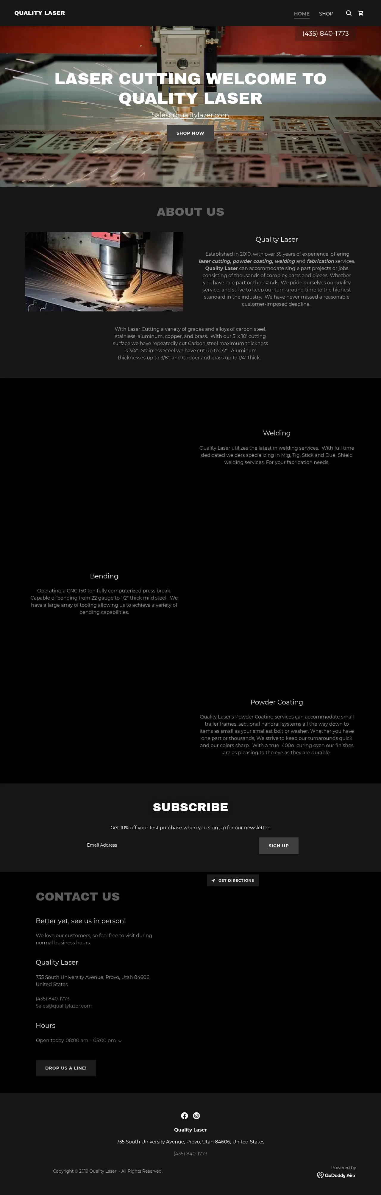 Quality Laser is a metal processing and fabrication company located in Provo, Utah. The business specializes in precision laser cutting, metal bending, and welding services for a variety of industrial applications. In addition to core fabrication, they offer powder coating services to provide durable finishing solutions. The company serves a diverse client base requiring custom metal components. Quality Laser focuses on providing reliable manufacturing support through efficient production processes and customer-oriented service.