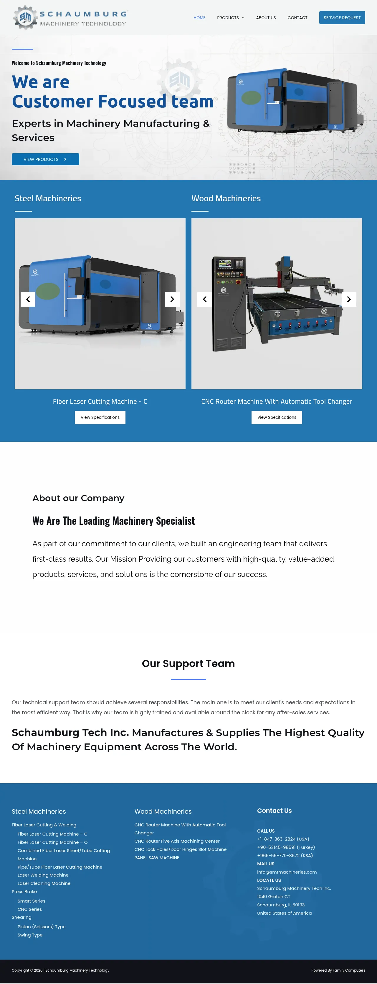 Schaumburg Machinery Technology is a multinational manufacturing company specializing in the design, development, and distribution of industrial machinery. The firm provides advanced metalworking and woodworking solutions, including fiber laser cutting, CNC machining, and hydraulic press operations. Their engineering team focuses on delivering high-quality, value-added products that improve operational efficiency for global clients. With a diverse portfolio of equipment, they serve industries requiring precise shearing, bending, and automated routing capabilities. The company is committed to maintaining stable, high-performance machinery standards through robust construction and integrated control systems.