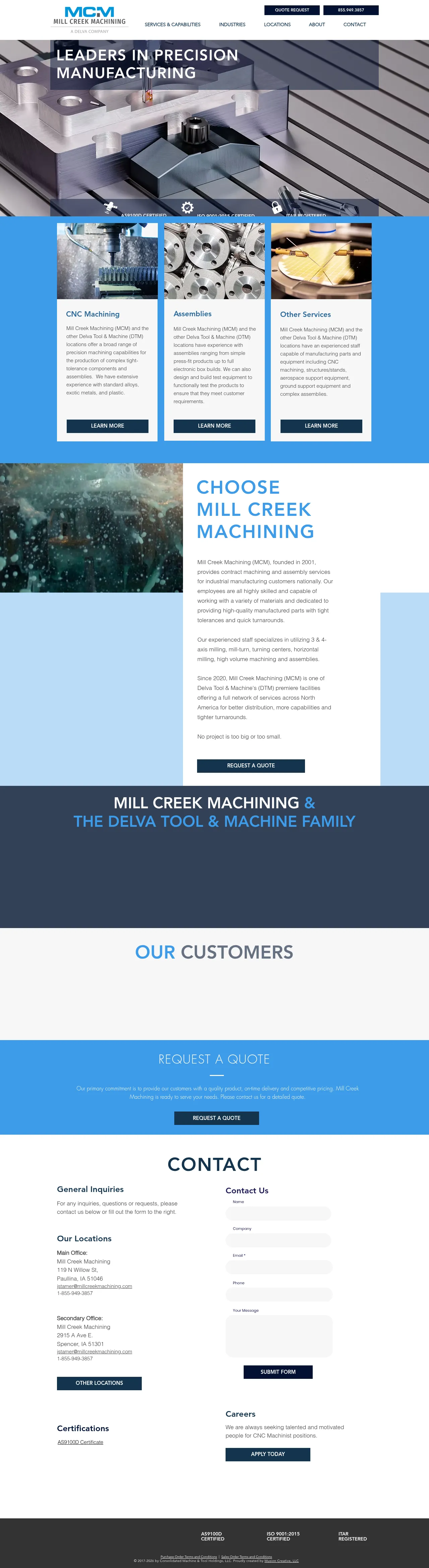 Mill Creek Machining specializes in high-precision contract manufacturing, including machining, assembly, and fabrication of complex engineered components. The company serves a diverse range of industries, including aerospace, defense, medical, and semiconductor sectors. With extensive manufacturing capacity across multiple locations, they utilize advanced CNC technology to handle both high-volume production and complex milling requirements. Their services are designed to ensure high repeatability, tight tolerances, and efficient project execution. Mill Creek Machining emphasizes quality management through rigorous adherence to industry standards and customer specifications.