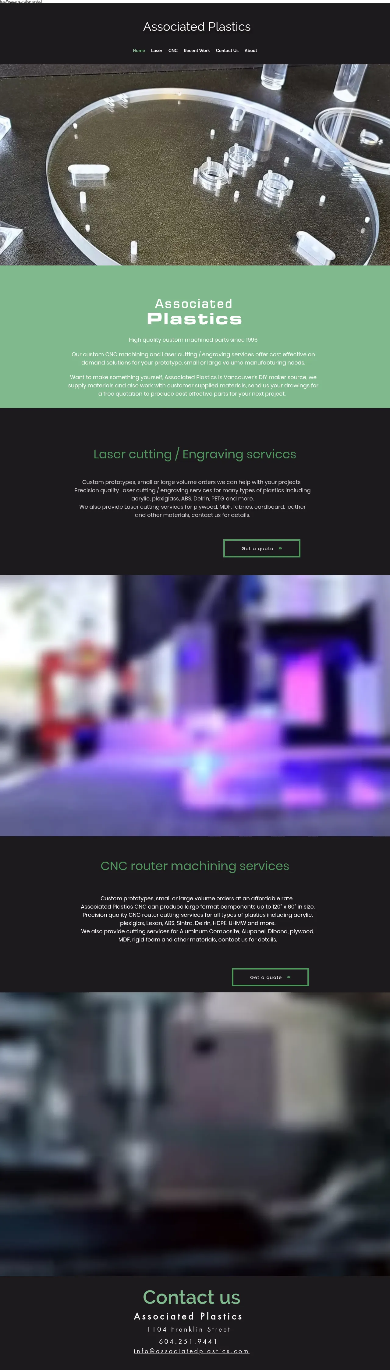 Associated Plastics is a Vancouver-based fabrication facility specializing in custom CNC machining and laser cutting services since 1996. The company provides manufacturing solutions ranging from rapid prototypes to high-volume production for industries including industrial, aerospace, film, and commercial retail. Core capabilities include precision CNC routing, laser engraving, and comprehensive post-cutting fabrication such as bending and assembly. They maintain the capacity to handle large-format components up to 120 by 60 inches. The firm is dedicated to technical precision and efficient communication, offering custom design support for projects of varying complexity.