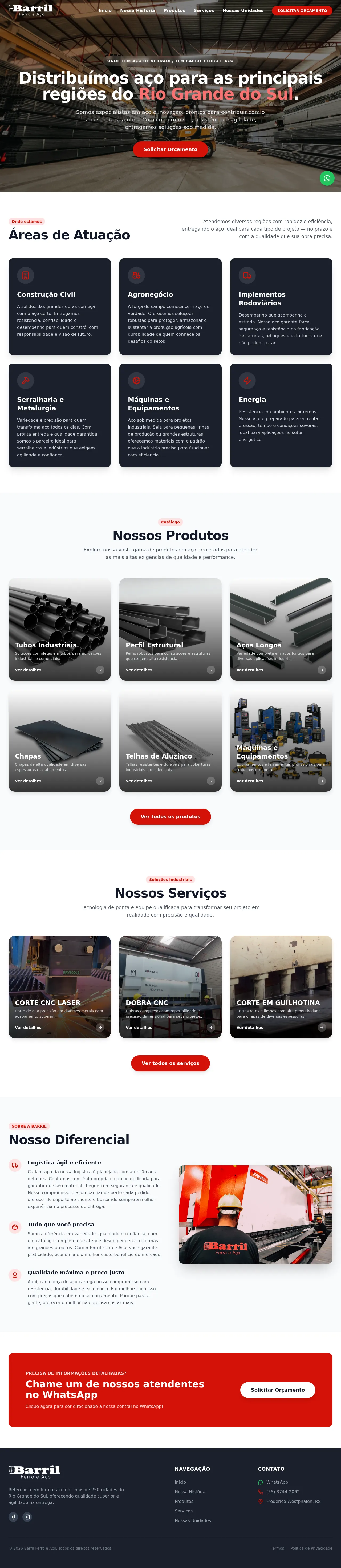 Barril Ferro e Aço is a metal supply and processing company serving clients across over 250 cities in Rio Grande do Sul. The company provides a comprehensive catalog of steel products, including structural profiles, tubing, sheets, and roof tiles, supporting industries such as civil construction, agribusiness, and metallurgy. Beyond distribution, the firm offers advanced metal forming and fabrication services using high-precision CNC technology. With a focus on efficiency, the company maintains its own logistics fleet to ensure timely delivery of materials. They specialize in tailoring solutions to specific project needs, providing technical expertise and competitive pricing for projects of all scales.
