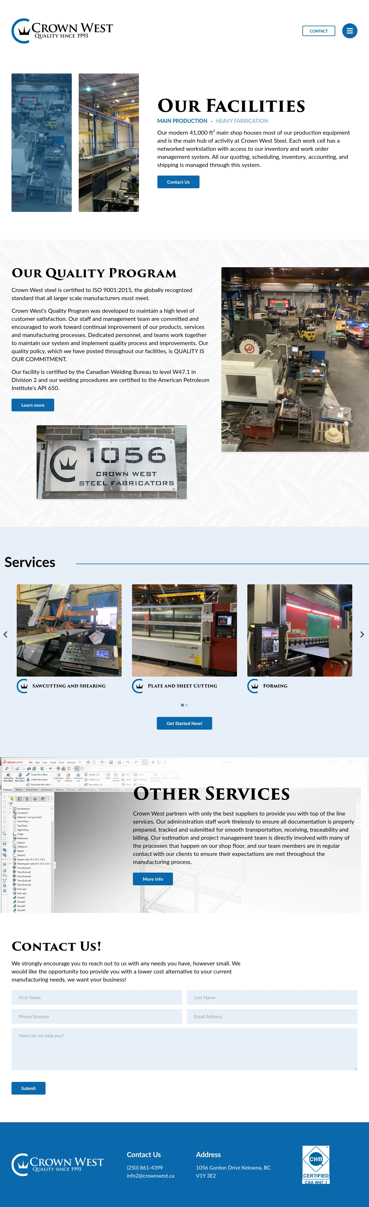 Crown West is an industrial manufacturing service provider specializing in precision machining and fabrication solutions. The company supports a diverse range of industrial sectors by delivering high-quality component production and assembly services. With a focus on technical accuracy and manufacturing efficiency, they utilize specialized machinery to fulfill complex design requirements. Their operation is committed to maintaining high standards of quality control throughout the manufacturing lifecycle. By integrating advanced production capabilities, the firm provides scalable solutions tailored to meet unique project specifications.