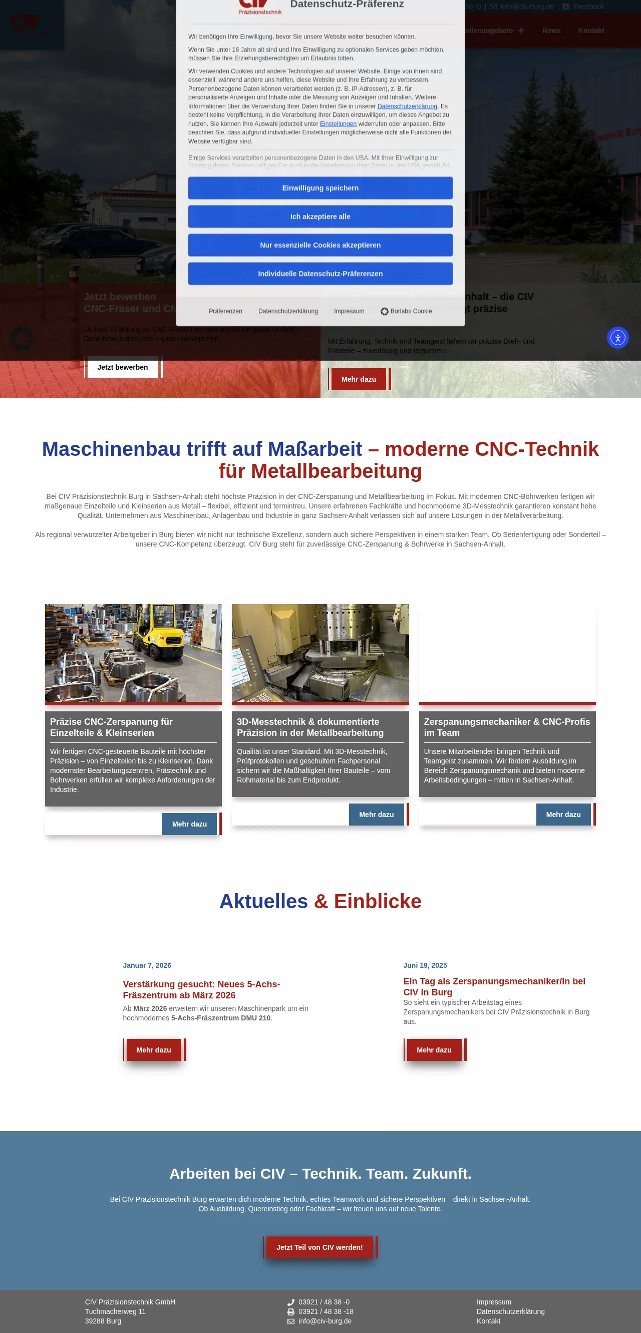 CIV Präzisionstechnik GmbH is an industrial manufacturing company based in Burg, Germany, specializing in precision CNC-controlled components. The firm provides manufacturing solutions ranging from single-part production to small-batch series for diverse industrial applications. Utilizing advanced machining centers, milling technology, and boring mills, the company ensures high-precision results for complex technical requirements. A comprehensive quality management system, including 3D measurement technology and detailed testing protocols, is applied to monitor products from raw material to the final component. The company also focuses on vocational training and professional development within the field of machining mechanics.