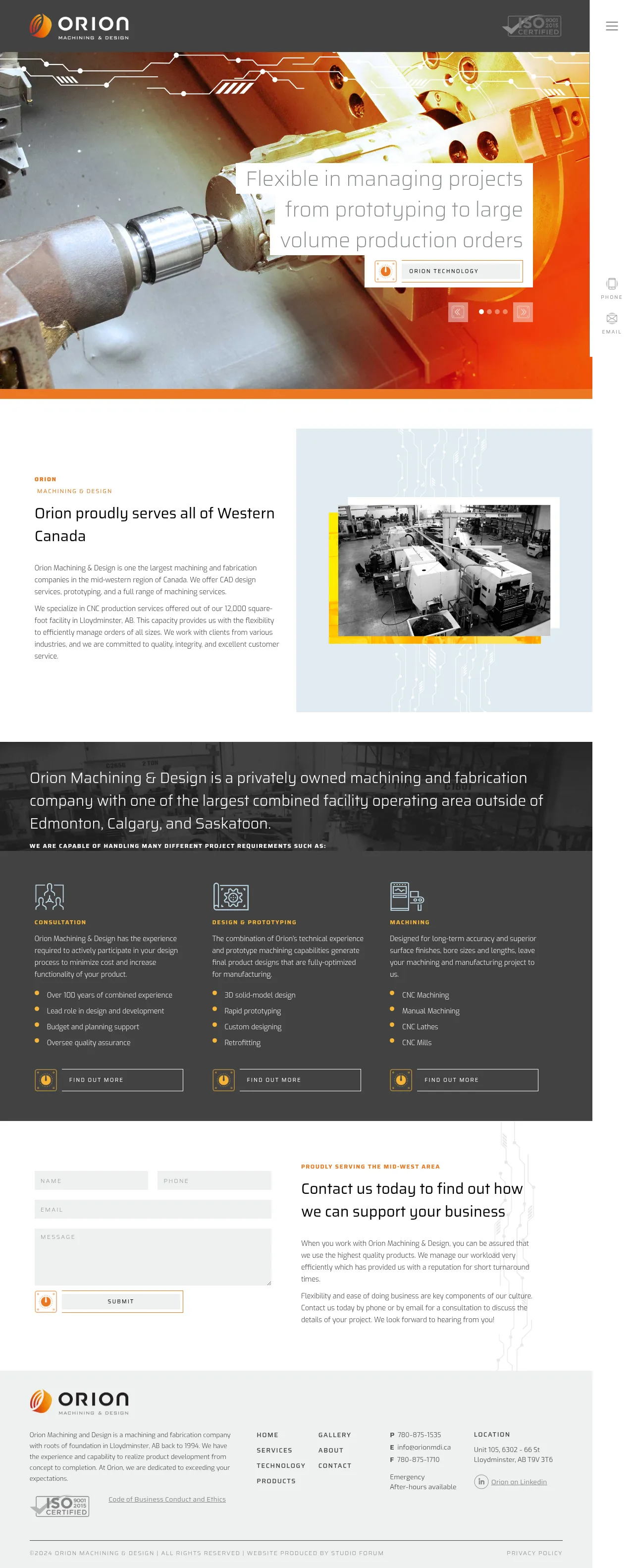Orion Machining and Design is a full-service manufacturing facility based in Lloydminster, Alberta, specializing in CNC production and precision machining. Established in 1994, the company provides end-to-end solutions including 3D design, rapid prototyping, and high-volume manufacturing. They serve diverse industrial sectors with an emphasis on quality assurance, technical documentation, and stringent process control. Their facility is equipped to handle complex projects ranging from custom one-off parts to large-scale production runs. The company maintains a commitment to integrity and client support through every stage of the product development cycle.