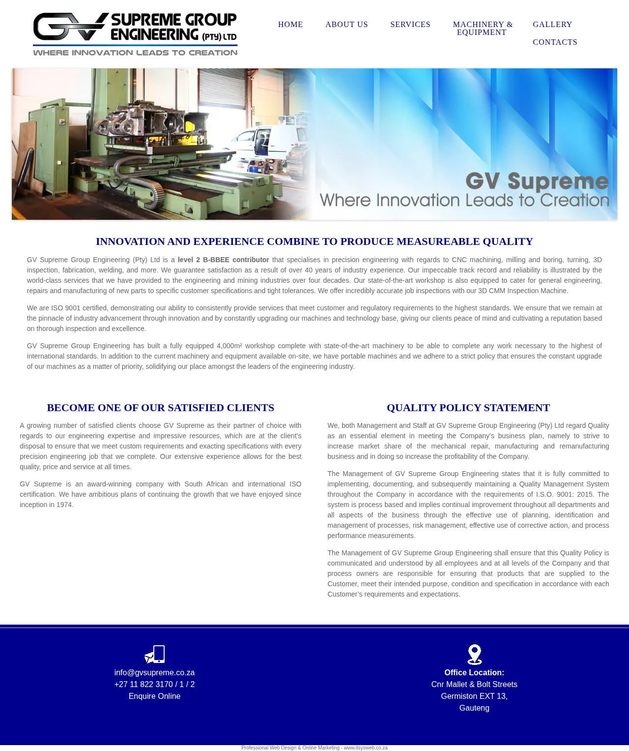 GV Supreme Group Engineering is a precision engineering firm specializing in CNC machining, milling, boring, turning, and fabrication. With over 40 years of industry experience, the company provides manufacturing, repair, and remanufacturing services primarily to the mining and engineering sectors. Their 4,000m² facility features state-of-the-art technology and advanced 3D CMM inspection capabilities to ensure strict adherence to customer specifications. The company is committed to continuous process improvement and maintains international standards for quality management. They serve clients globally by offering a combination of technical expertise, large-scale production resources, and rigorous quality control.