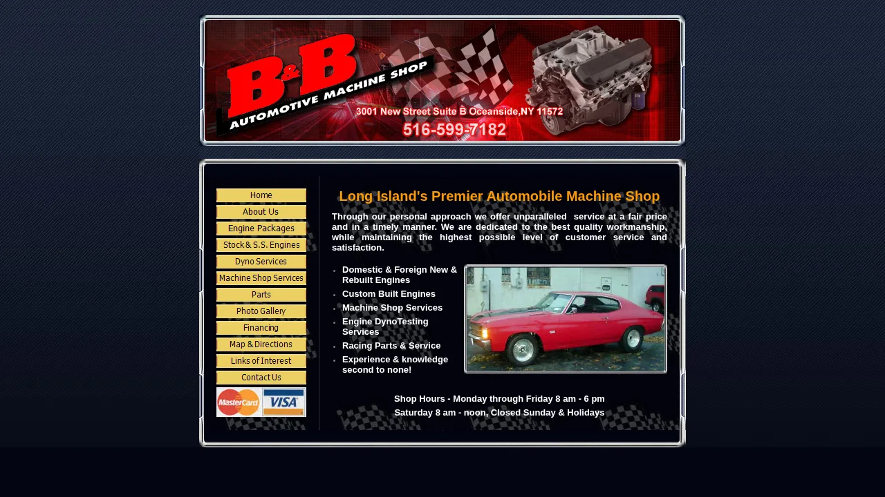 B&B Auto Machine serves as a premier automotive machining facility based on Long Island. The company specializes in the development and production of custom-built engines tailored for high-performance applications. Their core capabilities include comprehensive machine shop services and professional engine dynamometer testing. The business supports the racing and automotive restoration industries by providing high-quality parts and technical precision. They maintain a standard operational schedule to ensure consistent service for all client projects.