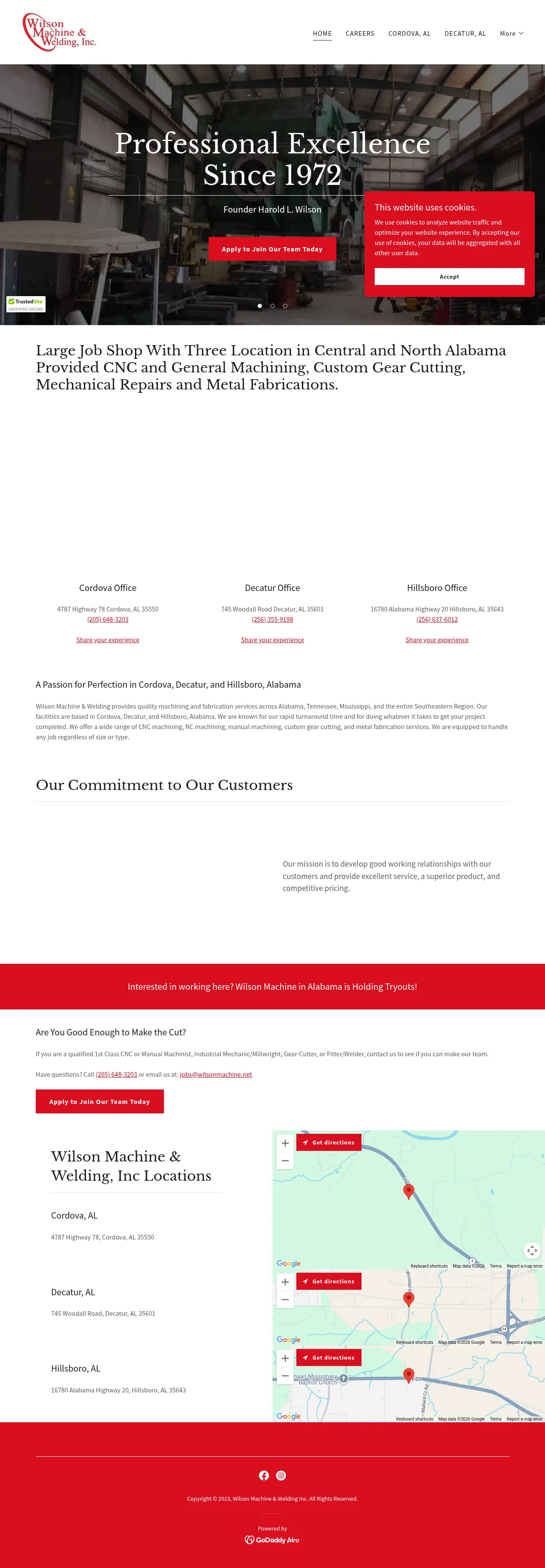 Wilson Machine is an industrial machining, fabrication, and repair company operating three facilities in Alabama. Established in 1972, the company provides extensive mechanical services including custom gear cutting, CNC turning, milling, and heavy equipment rebuilding. They support a diverse customer base with emergency repair services, field fabrication, and large-capacity manufacturing capabilities. The firm maintains a wide array of manual and CNC machinery to handle both small-scale projects and complex, large-format industrial tasks. Their operations emphasize rapid turnaround for mission-critical repairs and consistent quality across all manufactured components.