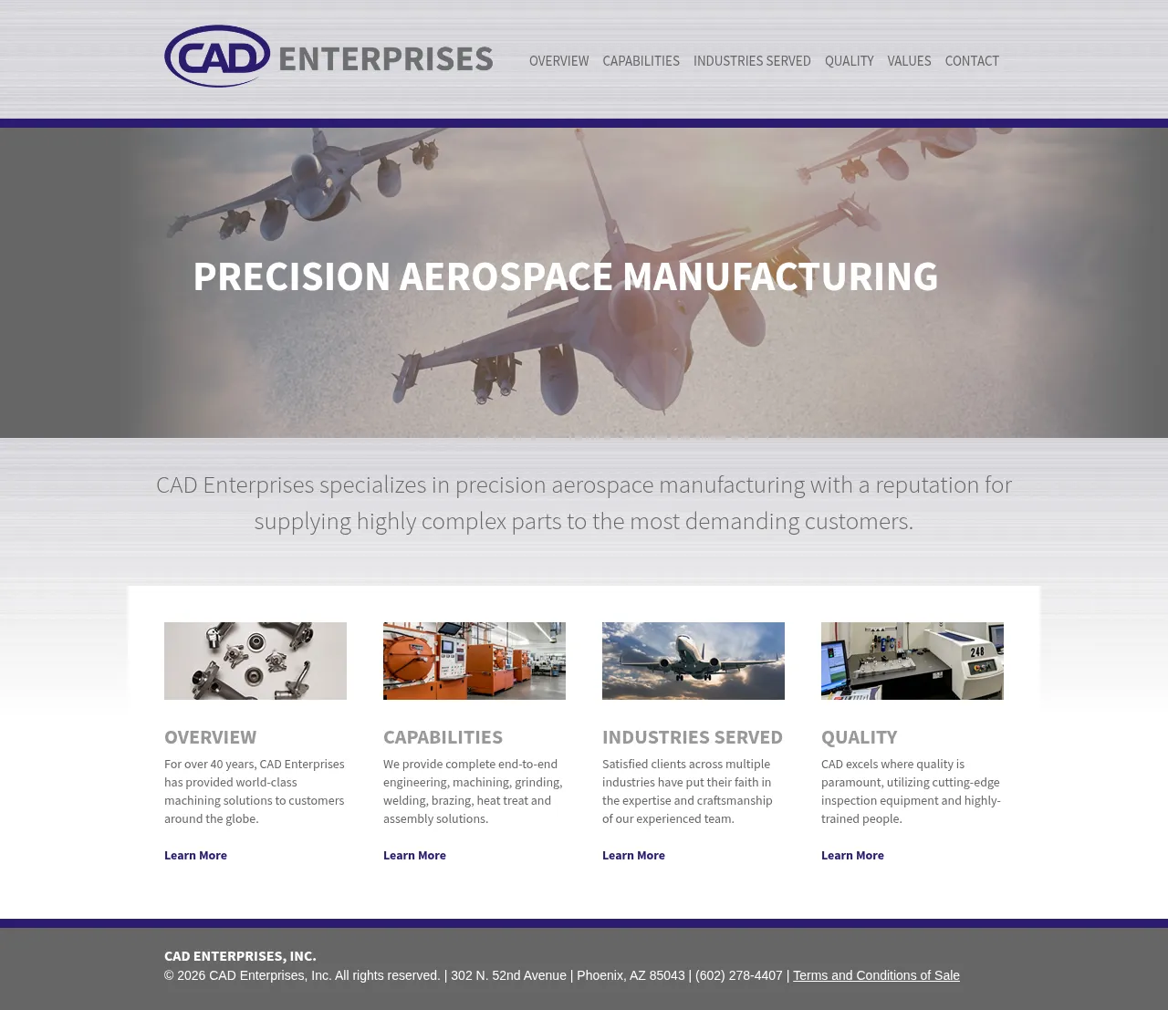 CAD Enterprises, Inc. is a precision manufacturing company with over 40 years of experience serving the aerospace industry. The firm specializes in the production of highly complex components for demanding applications. Its comprehensive service offering includes engineering, machining, grinding, welding, brazing, heat treatment, and final assembly. The company maintains a strong focus on quality assurance, utilizing advanced inspection protocols and a skilled workforce to meet global client requirements.