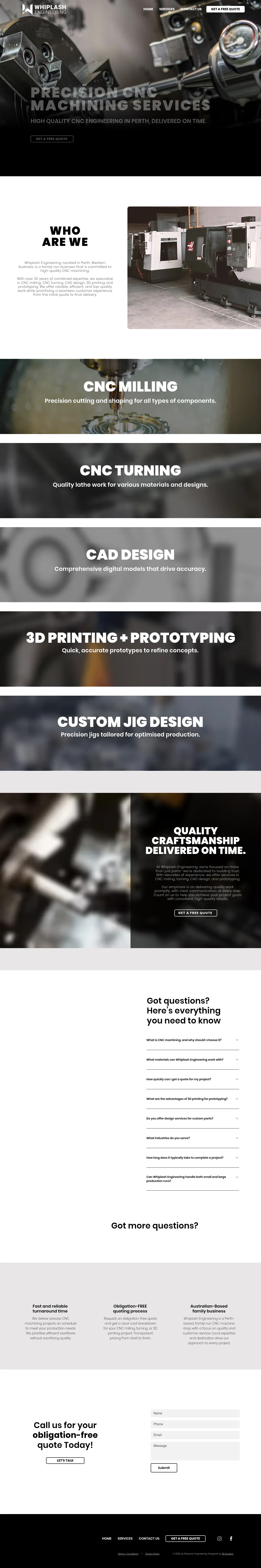 Whiplash Engineering is a Perth-based CNC machining business offering precision machining, CAD design, and prototyping services. The company provides CNC milling and turning, 3D printing, custom jigs and fixtures, and low-volume manufacturing. It supports projects from initial quoting through to final delivery with a focus on accurate, custom components.
