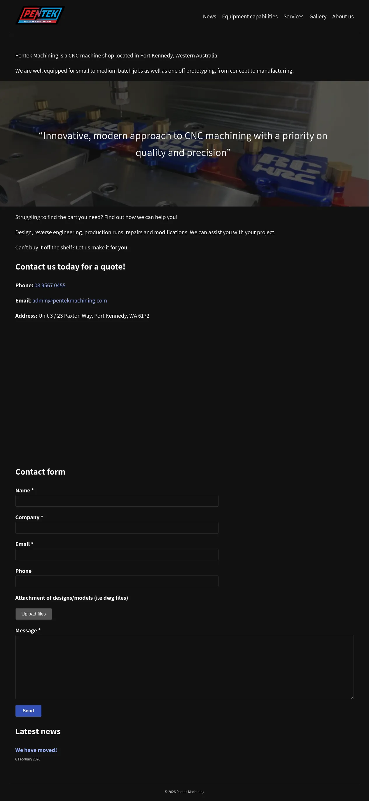 Pentek provides precision CNC machining and light fabrication services using modern equipment. The company handles one-off prototypes through small- to medium-volume production runs and offers CAD-based design and reverse engineering support. Pentek emphasizes attention to detail and customer service in delivering manufactured components.