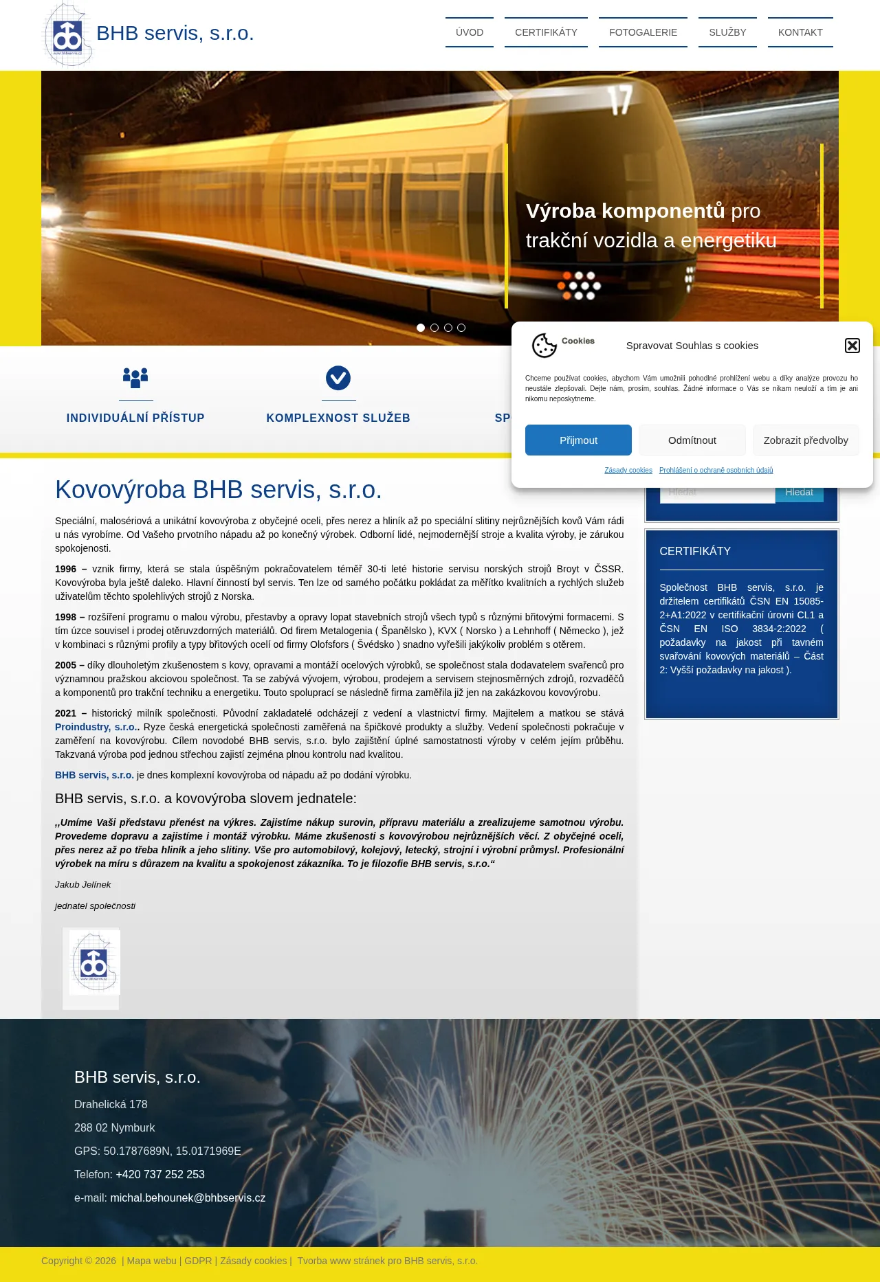 BHB servis, s.r.o. provides comprehensive metal fabrication services, managing projects from initial design and material procurement to final production and assembly. The company serves a diverse range of industries, including automotive, railway, aerospace, machinery, and manufacturing. Their technical expertise encompasses a wide variety of metalworking processes, supported by modern equipment and a commitment to quality standards. The firm offers custom manufacturing solutions, ranging from small-batch production to unique prototypes tailored to specific client requirements.