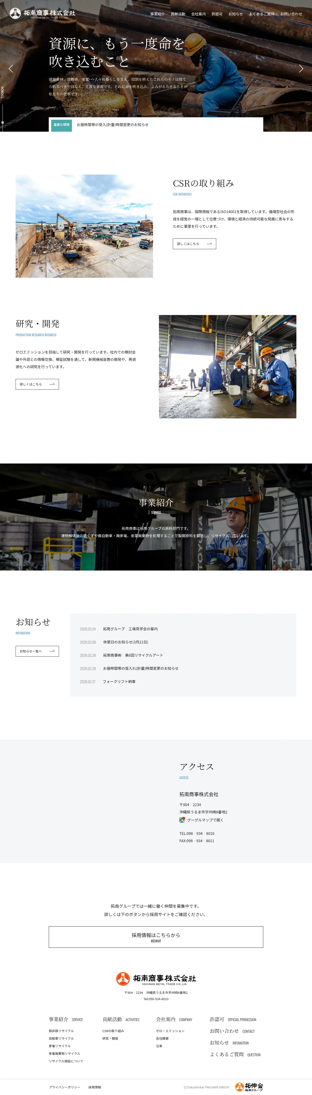 8-2 Suzaki, Uruma, Okinawa 904-2234, Japan, Katsuren-haebaru, Okinawa, Japan098-934-8010https://www.takunanrecycle.co.jp/faq/