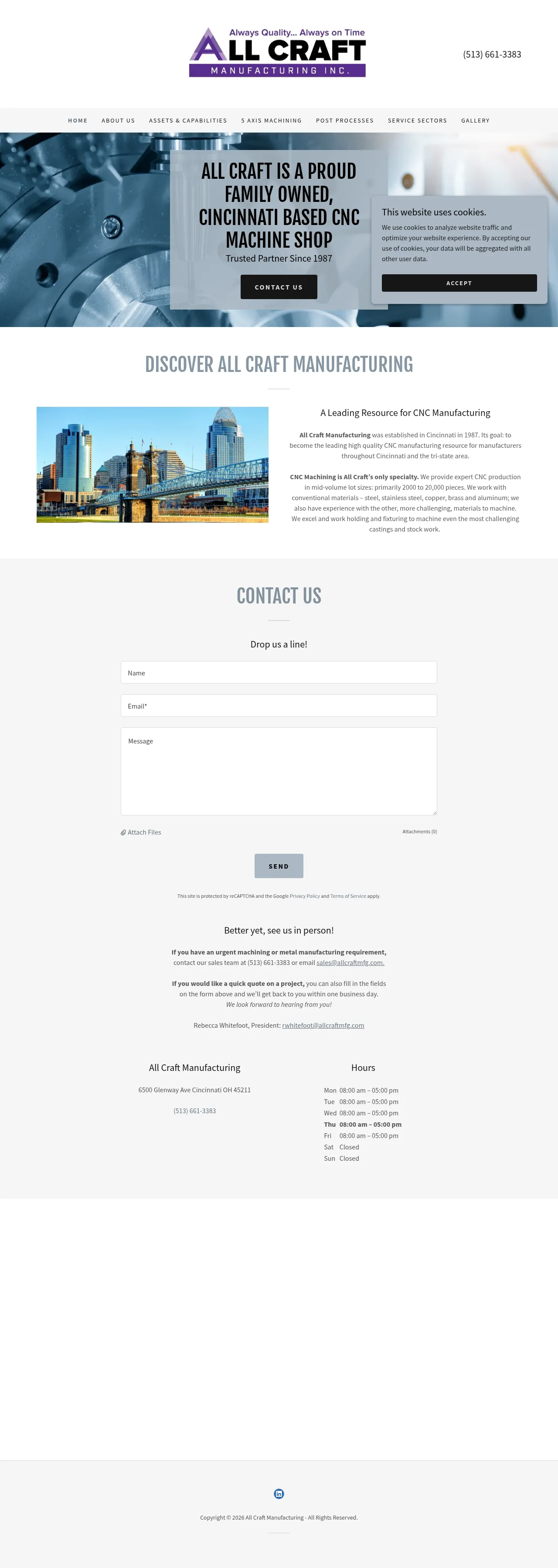 6500 Glenway Ave D-6, Cincinnati, OH 45211, USA, Cincinnati, Ohio, United States(513) 661-3383rwhitefoot@allcraftmfg.comhttp://allcraftmfg.com/
