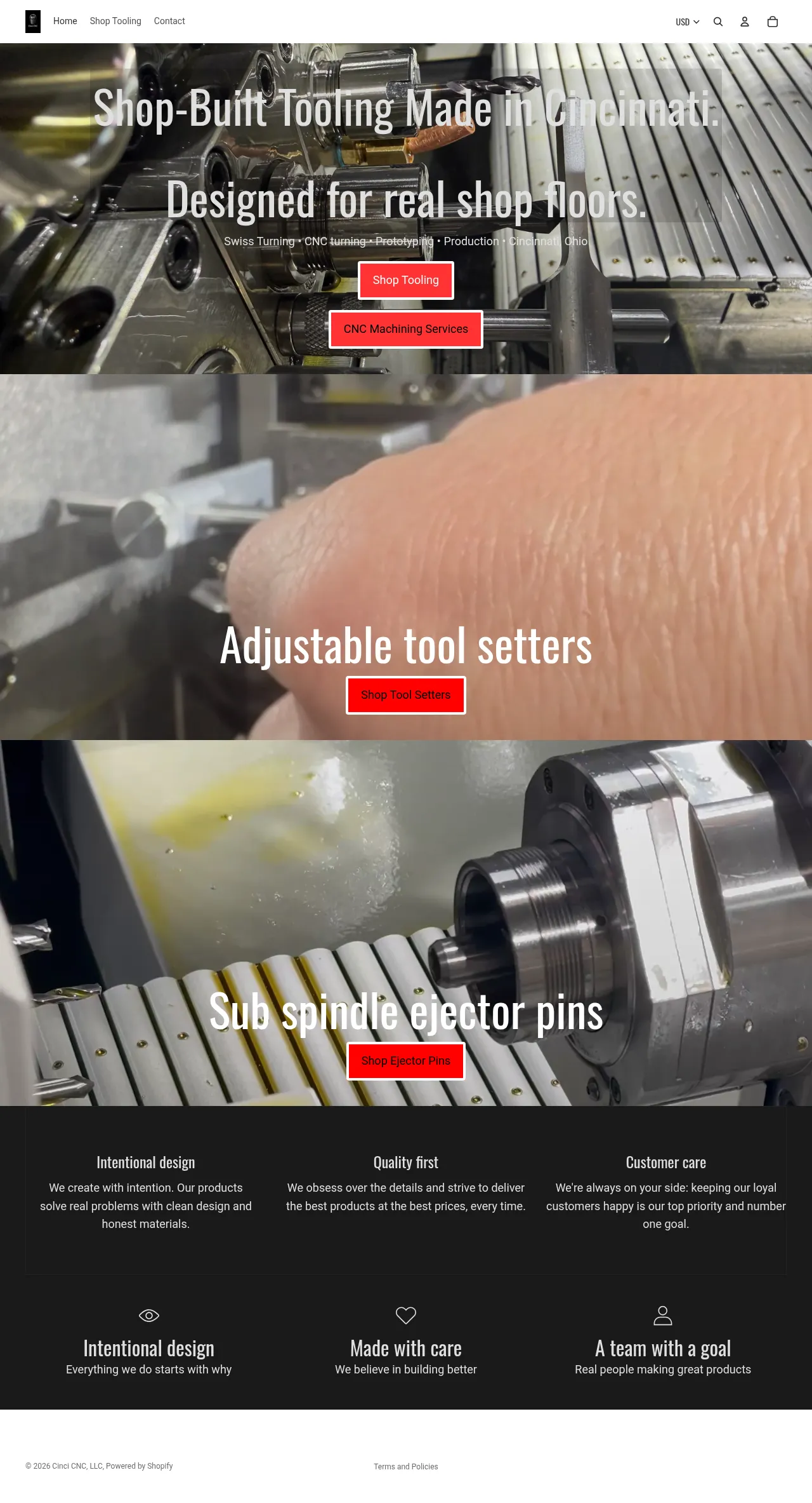 A Cincinnati, Ohio-based machining company offering CNC and Swiss turning capabilities for prototyping and production runs. The shop designs and builds its own tooling and fixtures for use on production shop floors. Services cover both low-volume prototypes and larger production machining projects.