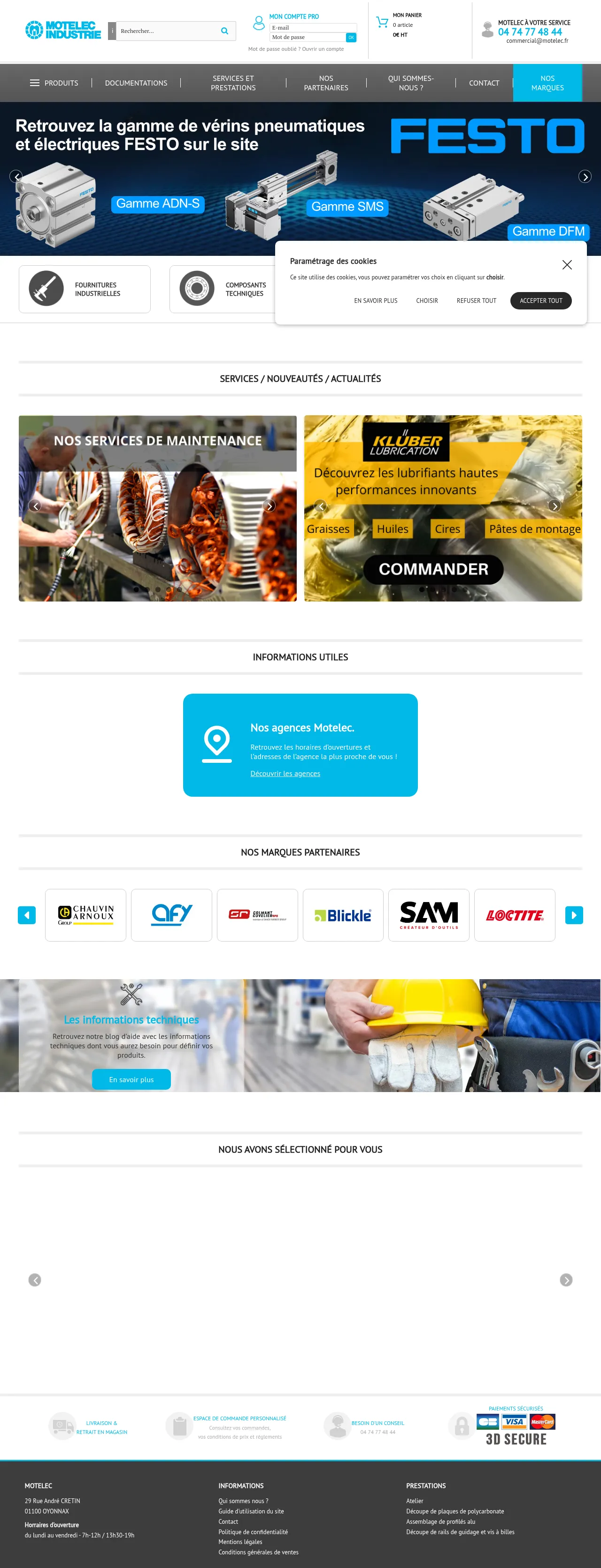 Motelec is an industrial supplier specializing in automation, mechanical transmission, and technical components. The company provides a comprehensive catalog of products for industrial maintenance and production, including pneumatics, electric motorization, and sealing systems. In addition to product distribution, Motelec offers specialized services such as custom cutting, conveyor belt assembly, tool repair, and technical optimization support. They operate as a trusted partner for industrial manufacturers by combining expert technical advice with a wide range of components from leading brands like Festo. The firm serves as a regional hub for professional procurement, offering secure ordering and personalized account management for industrial businesses.