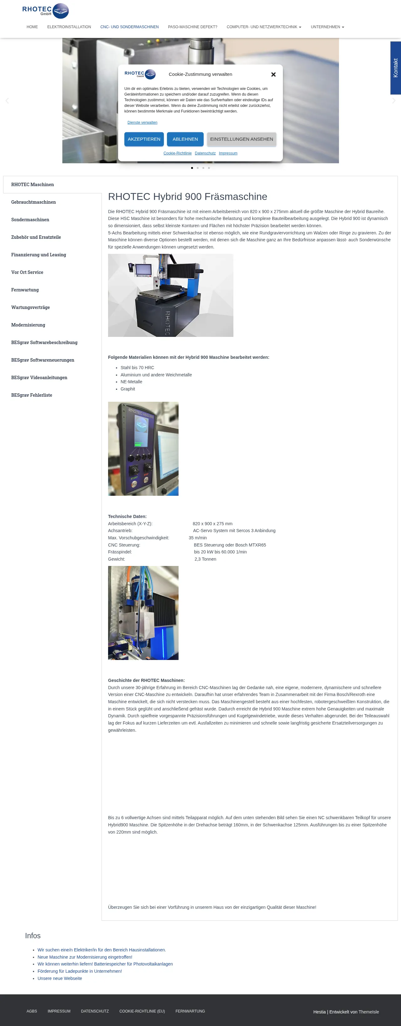 RHOTEC Computer GmbH develops and manufactures CNC milling and engraving machines, including the RHOTEC Hybrid 900 high-speed milling system. The company also provides machine modernization and retrofit services for a range of legacy equipment, plus on-site installation, commissioning and service contracts. RHOTEC supplies control electronics and software solutions, and offers financing and leasing options in cooperation with MMV Leasing.