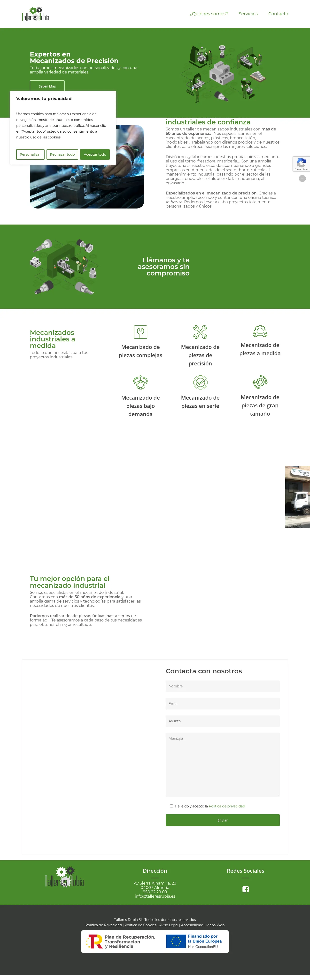 Talleres Rubia SL is an industrial machining workshop with over 50 years of experience serving clients in Almería. The company specializes in precision machining for a diverse range of sectors, including industrial maintenance, renewable energy, horticulture, and food packaging. They offer comprehensive services ranging from individual custom parts to large-scale series production. With an in-house technical department, the firm provides end-to-end support for custom design and manufacturing projects. The facility is equipped to handle complex machining tasks using a variety of industrial materials.