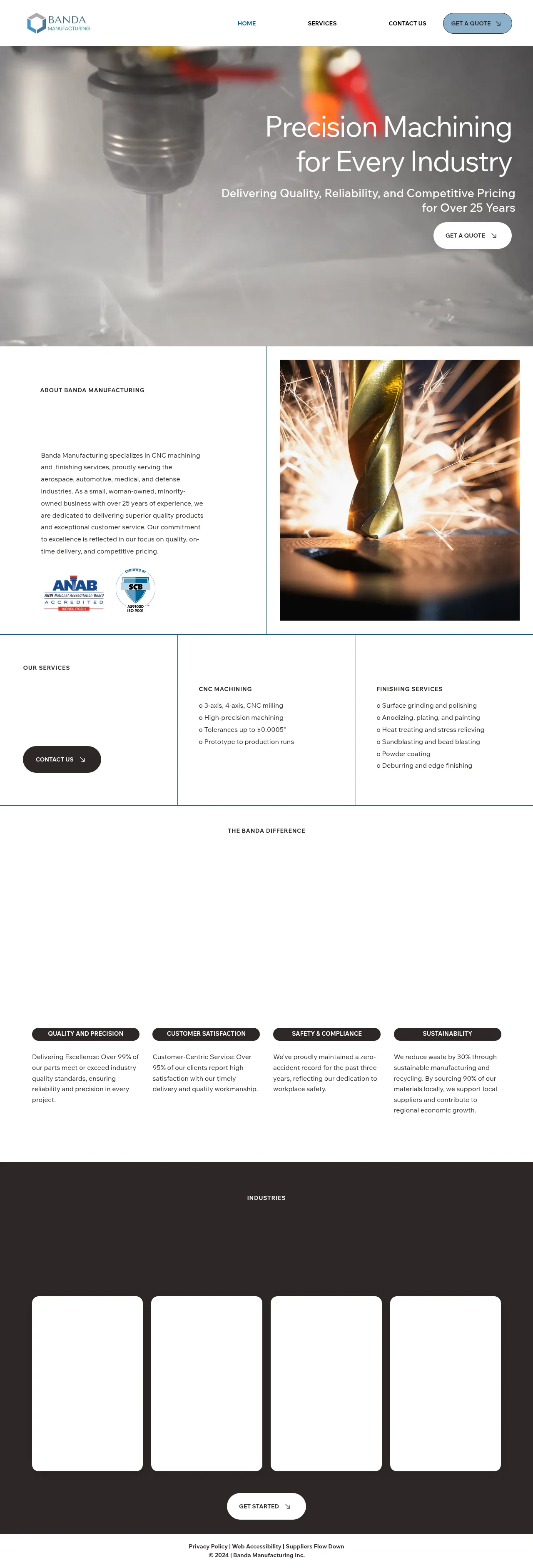 Banda Manufacturing is a minority, woman-owned precision machining facility based in Santa Clarita, California. The company provides CNC milling, turning, rapid prototyping, and various surface finishing services for the aerospace, medical, automotive, and defense industries. With over 18 years of experience, the shop specializes in producing high-precision components with tight tolerances, supported by robust quality management systems. The company is positioned to handle projects ranging from one-off prototypes to high-volume production runs. Their operational focus includes strategic supply chain management to maintain competitive pricing and quick turnaround times.