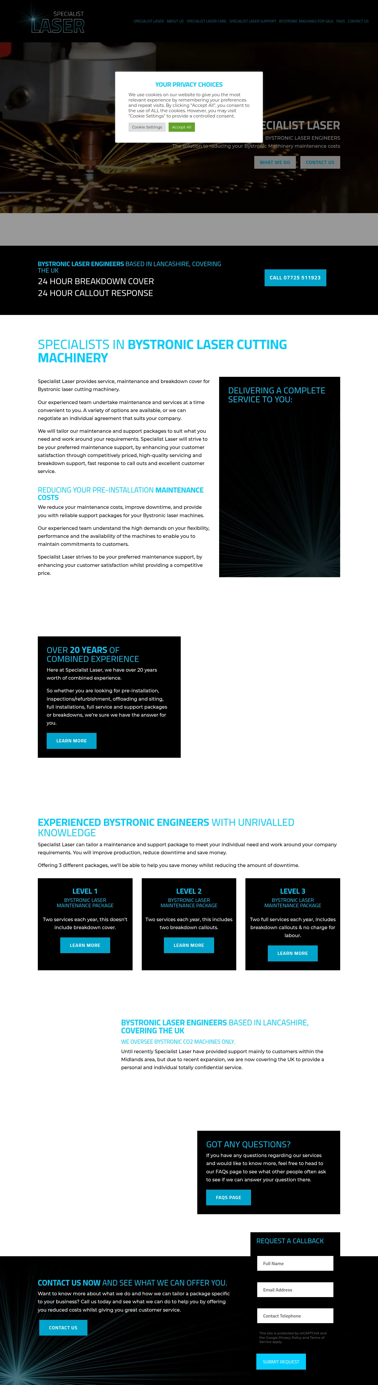 Specialist Laser Limited provides comprehensive maintenance, repair, and breakdown support services specifically for Bystronic CO2 laser cutting machinery. Serving clients across the United Kingdom, the company offers tailored support packages including routine servicing, pre-installation inspections, and equipment refurbishment. Their team of engineers, with over 20 years of combined industry experience, focuses on minimizing machine downtime and reducing maintenance costs. The firm operates as a cost-effective alternative to manufacturer-direct support, providing flexible service agreements to meet individual business requirements.