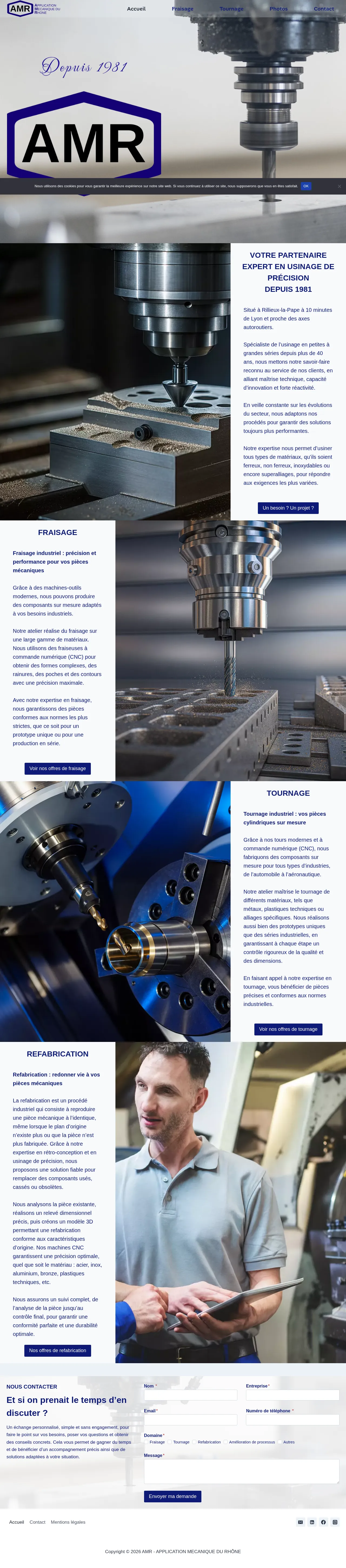 Application Mecanique du Rhone is an industrial machining specialist based in Rillieux-la-Pape, France, with over 40 years of experience. The company provides precision manufacturing solutions including CNC milling, turning, and the refabrication of obsolete or broken mechanical components. Serving diverse sectors such as automotive and aerospace, they maintain capabilities for both prototype production and large-scale industrial series. Their facility is equipped with modern CNC technology and they handle a broad spectrum of materials, ranging from standard metals and stainless steel to specialized alloys and engineering plastics.