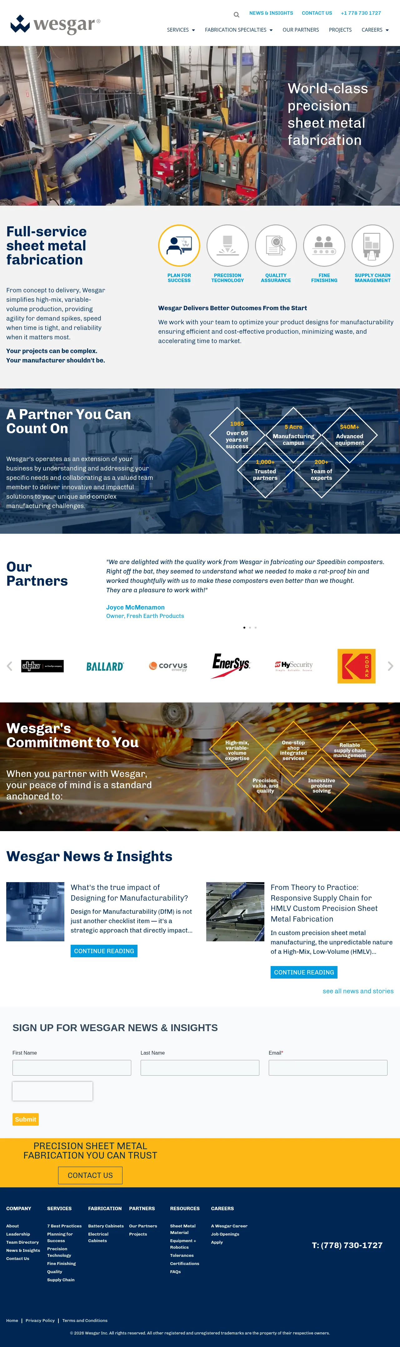 Wesgar is a full-service manufacturer specializing in precision sheet metal fabrication for high-mix, variable-volume production. The company provides end-to-end manufacturing support, including design for manufacturability, prototyping, assembly, and finishing services. Wesgar serves a diverse range of industries, such as cleantech, automotive, telecommunications, and power systems, utilizing an integrated supply chain management approach. With over 60 years of experience, the firm leverages rigorous quality control processes, including inspection and compliance standards, to ensure consistent product performance. By combining advanced technical expertise with a flexible, one-stop shop model, Wesgar facilitates efficient production from conceptual collaboration to final delivery.