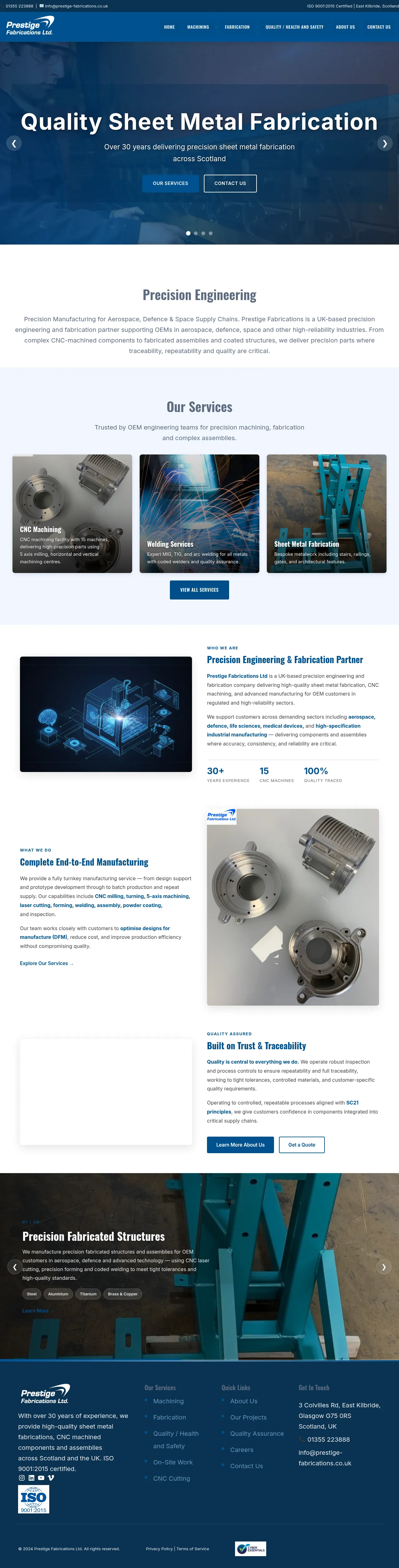 Prestige Fabrications Ltd is a UK-based precision engineering firm specializing in end-to-end manufacturing, including sheet metal fabrication, CNC machining, and complex assembly. With over 30 years of experience, the company serves highly regulated sectors such as aerospace, defense, and medical devices. Their capabilities range from design optimization and prototyping to batch production and final surface finishing. The company operates under strict quality management systems to ensure full traceability and adherence to tight tolerances. By providing a single-source supply chain solution, they assist OEM customers in improving production efficiency and reducing costs.